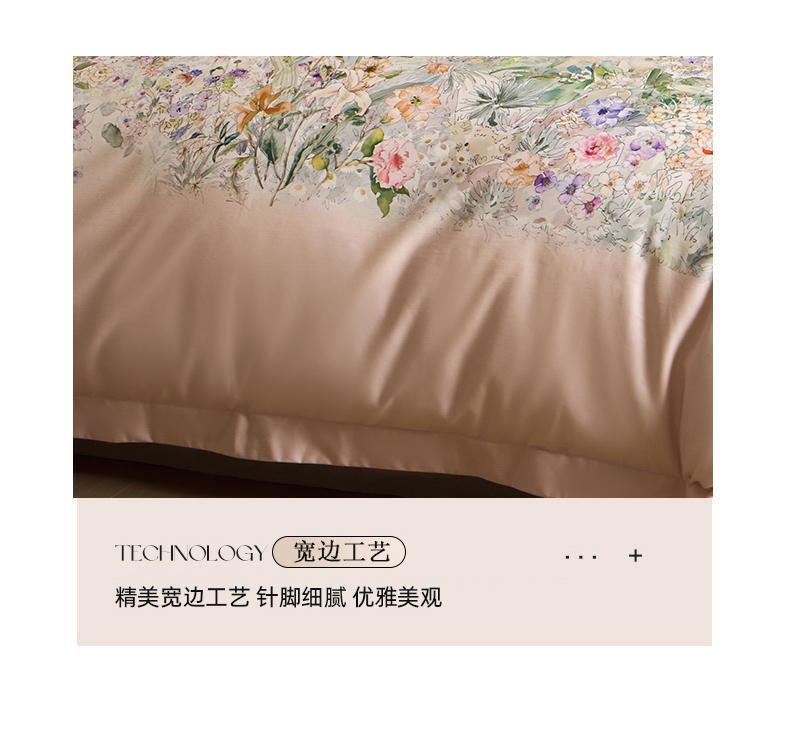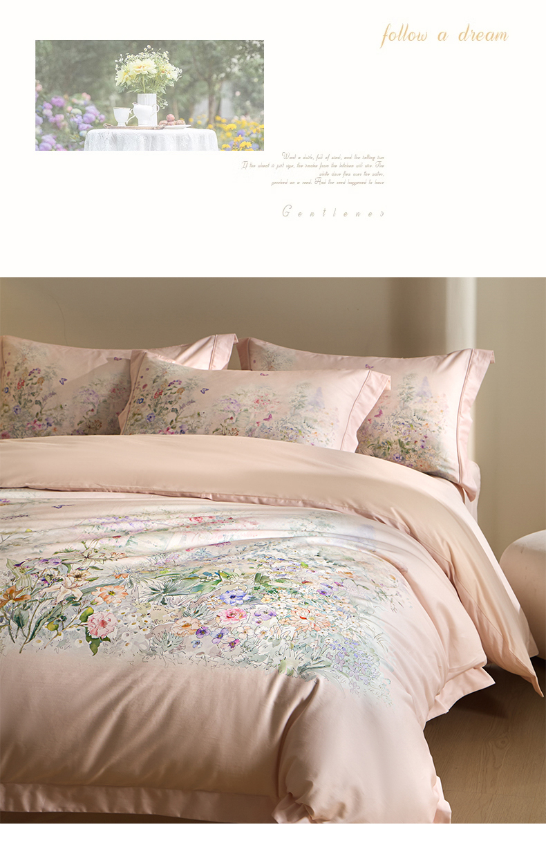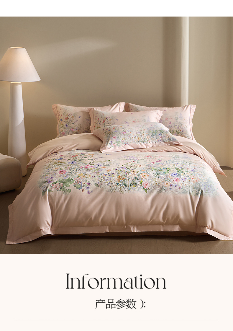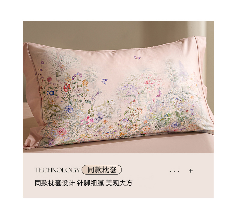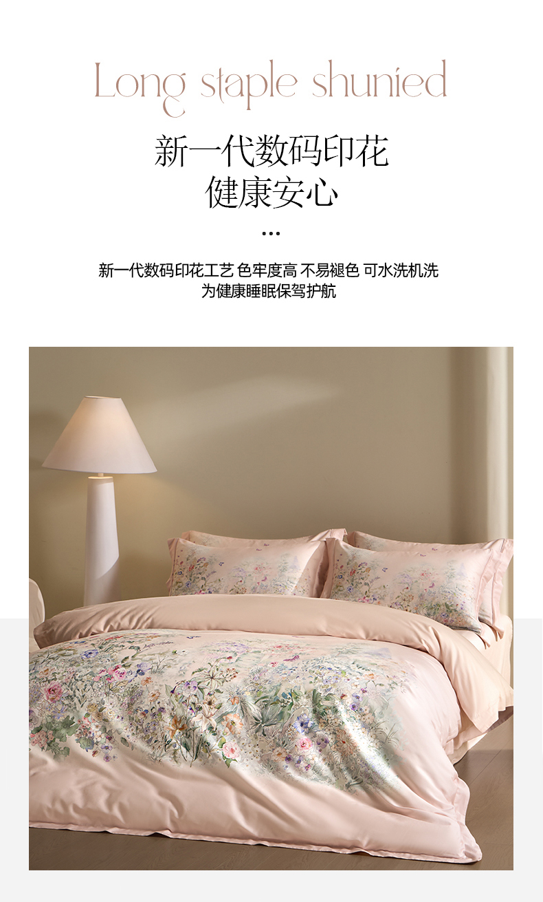 U品汇 2026新品纯棉全棉平网大版数码印花四件套高端60支长绒棉贡缎埋绳宽边系列 雾花蝶影(粉)