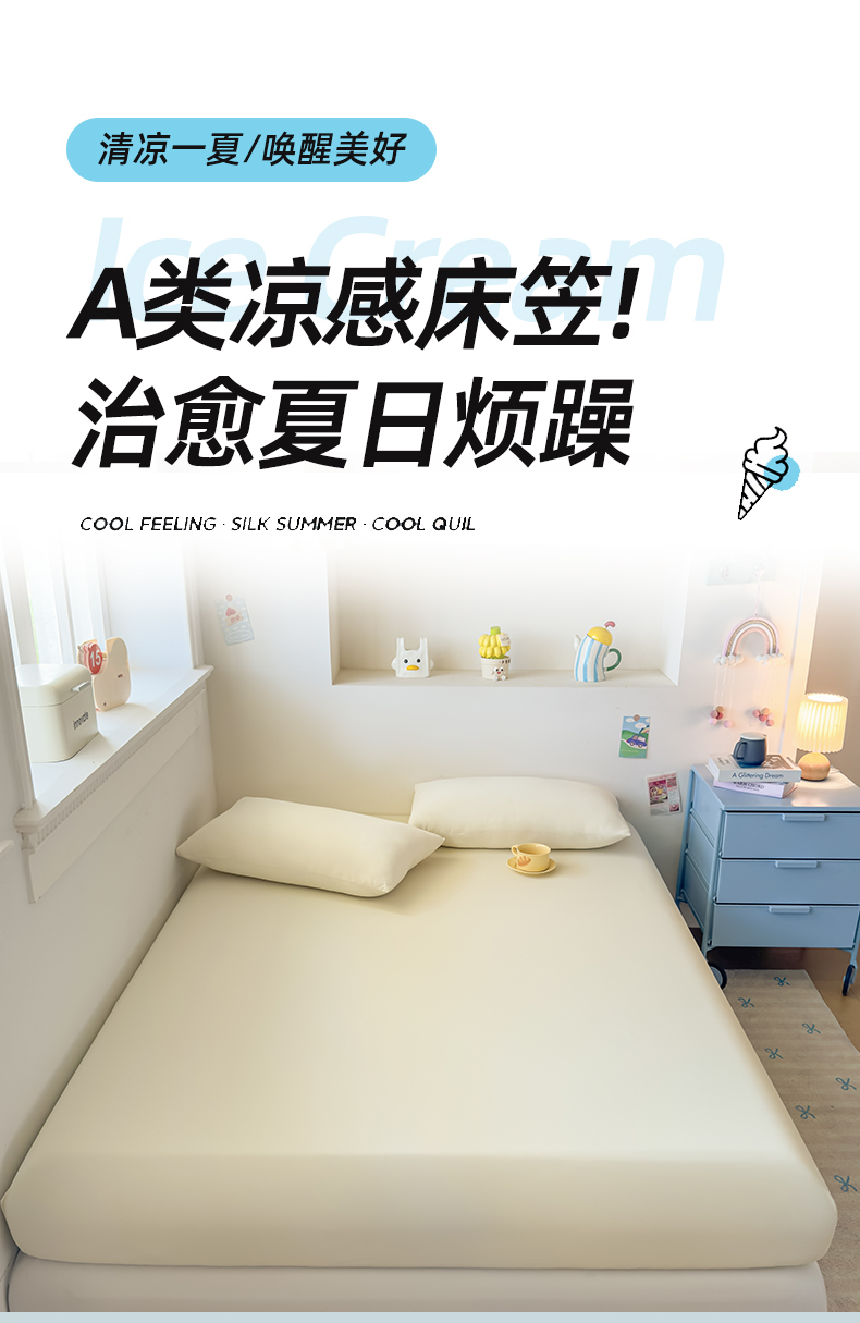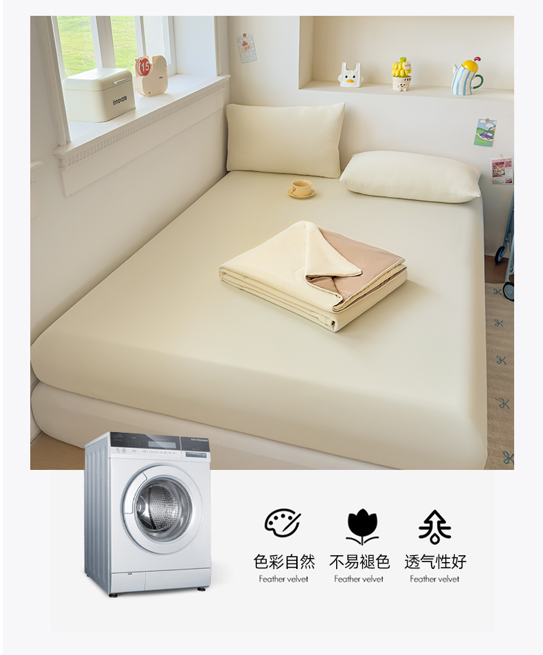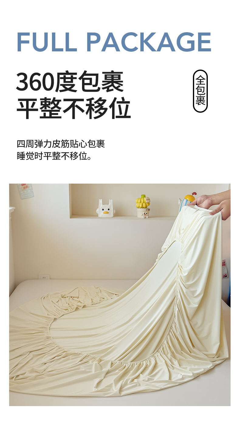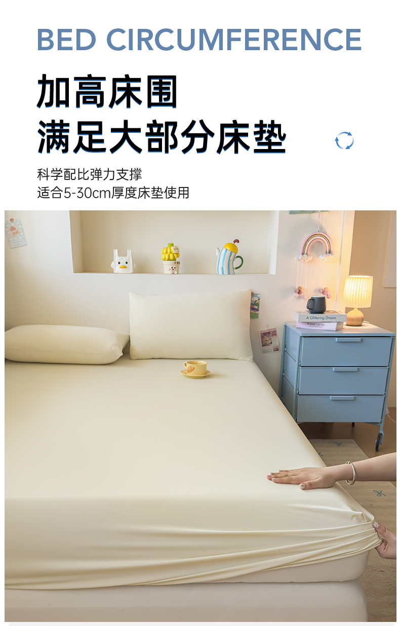 (总)大吉 2026新款纯色锦氨系列单床笠,深睡蓝,清月紫,摩卡咖,奶油白,天空蓝,薄荷绿,荔枝粉,本白,雪绒灰