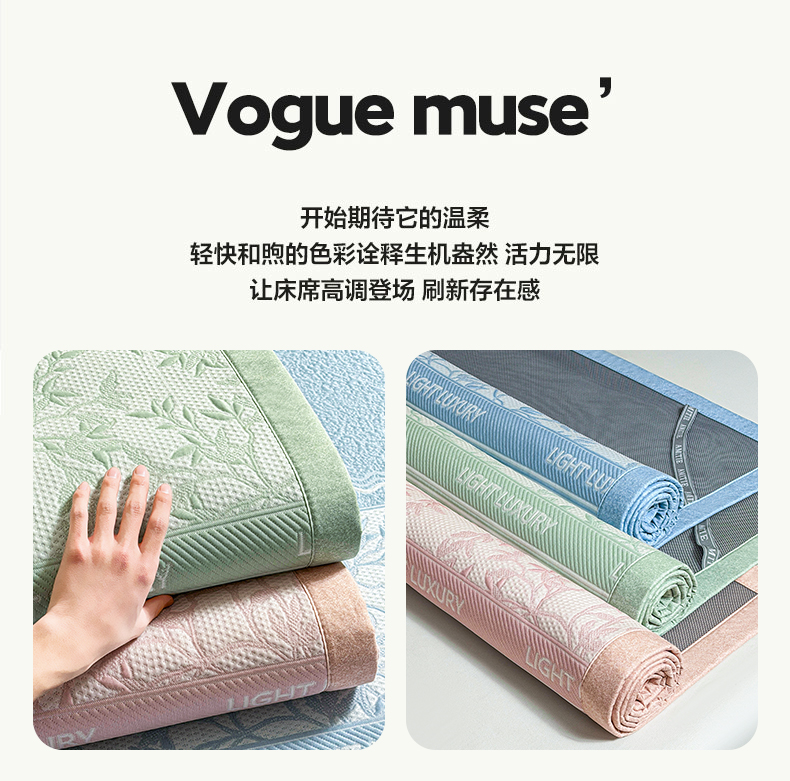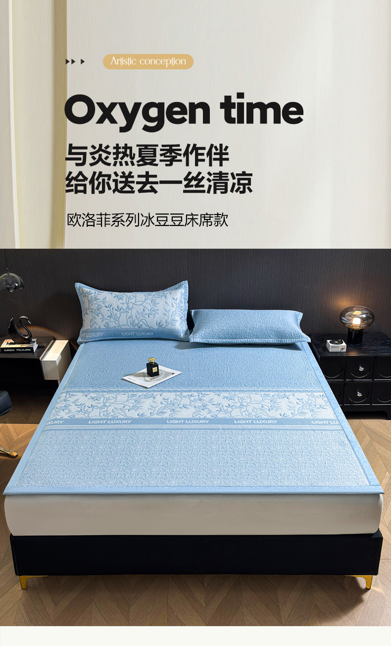 (总)慕木家纺 2026新款高端复合三明治PE乙纶提花610克冰豆豆凉席欧洛菲系列(提供买家秀)