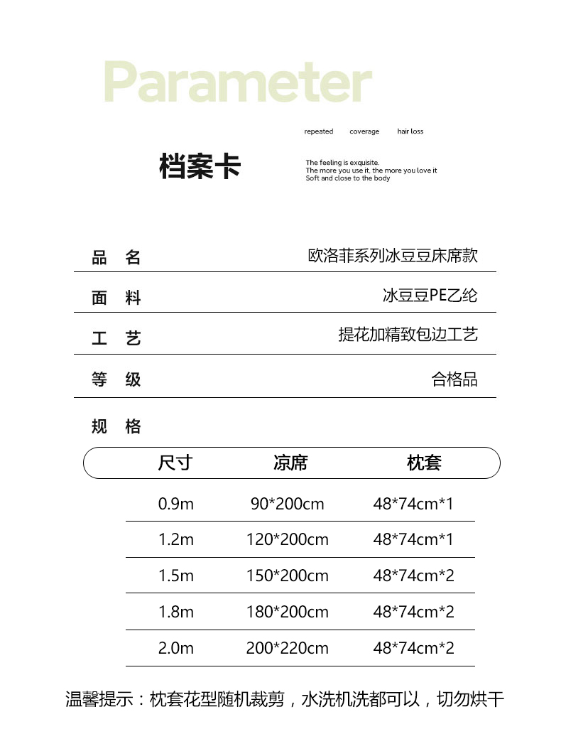 商品名称:(总)慕木家纺 2026新款高端复合三明治PE乙纶提花610克冰豆豆凉席欧洛菲系列(提供买家秀)