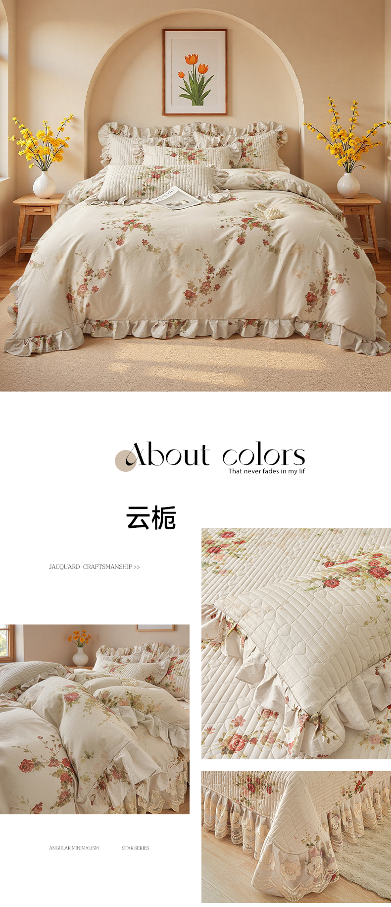 当前位置: 91家纺网 > 商品网购 > 床品套件 > 四件套 > 全棉普通四件套 > 宜凡家纺 2026新款全棉数码印花床盖三四件套①号系列四件套 光之羽-粉