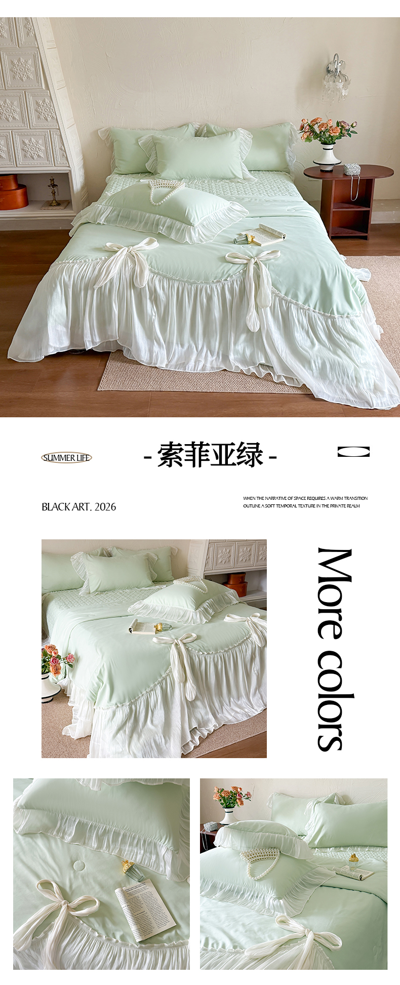当前位置: 91家纺网 > 商品网购 > 床品套件 > 四件套 > 夏被四件套 > 吾欢心 2026春夏新款高端定制索菲亚夏被四件套空调被床单款床盖款 索菲亚绿-夏被四件套