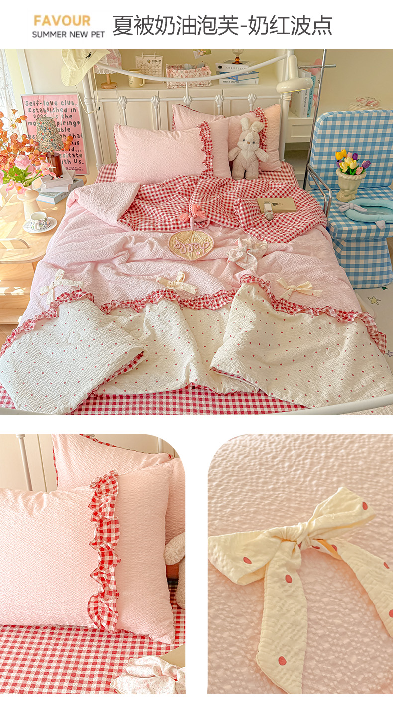 (总)瑞禾家纺(原阿亮) 2026新款提花泡芙棉拼角蝴蝶结软乎乎的撸猫感单夏被夏被四件套-甜莓气泡,甜莓气泡-海盐蓝波点,甜莓气泡-奶粉波点,甜莓气泡-奶红波点,甜莓气泡-奶灰波点,组合图(仅供展示不可下单)