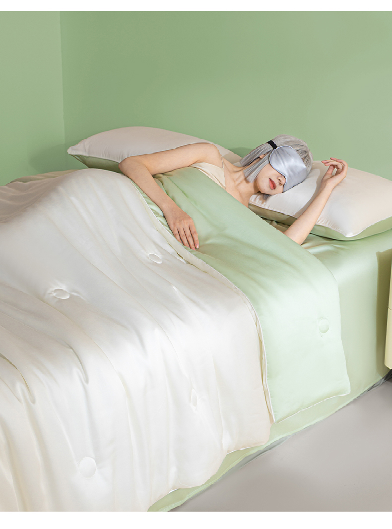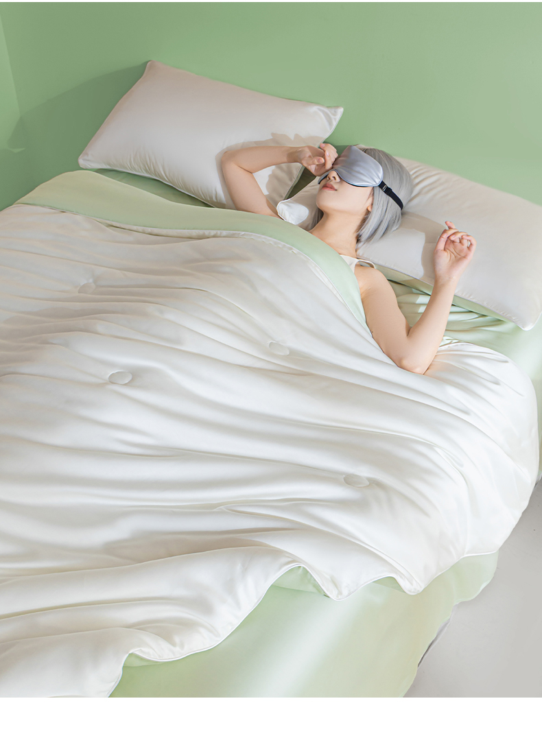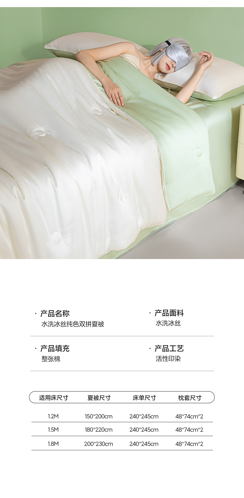 云棉坊 2026新款水洗冰丝滚边款夏被-双拼系列 双拼-贵族白+水果清香