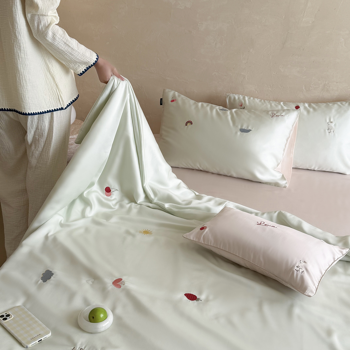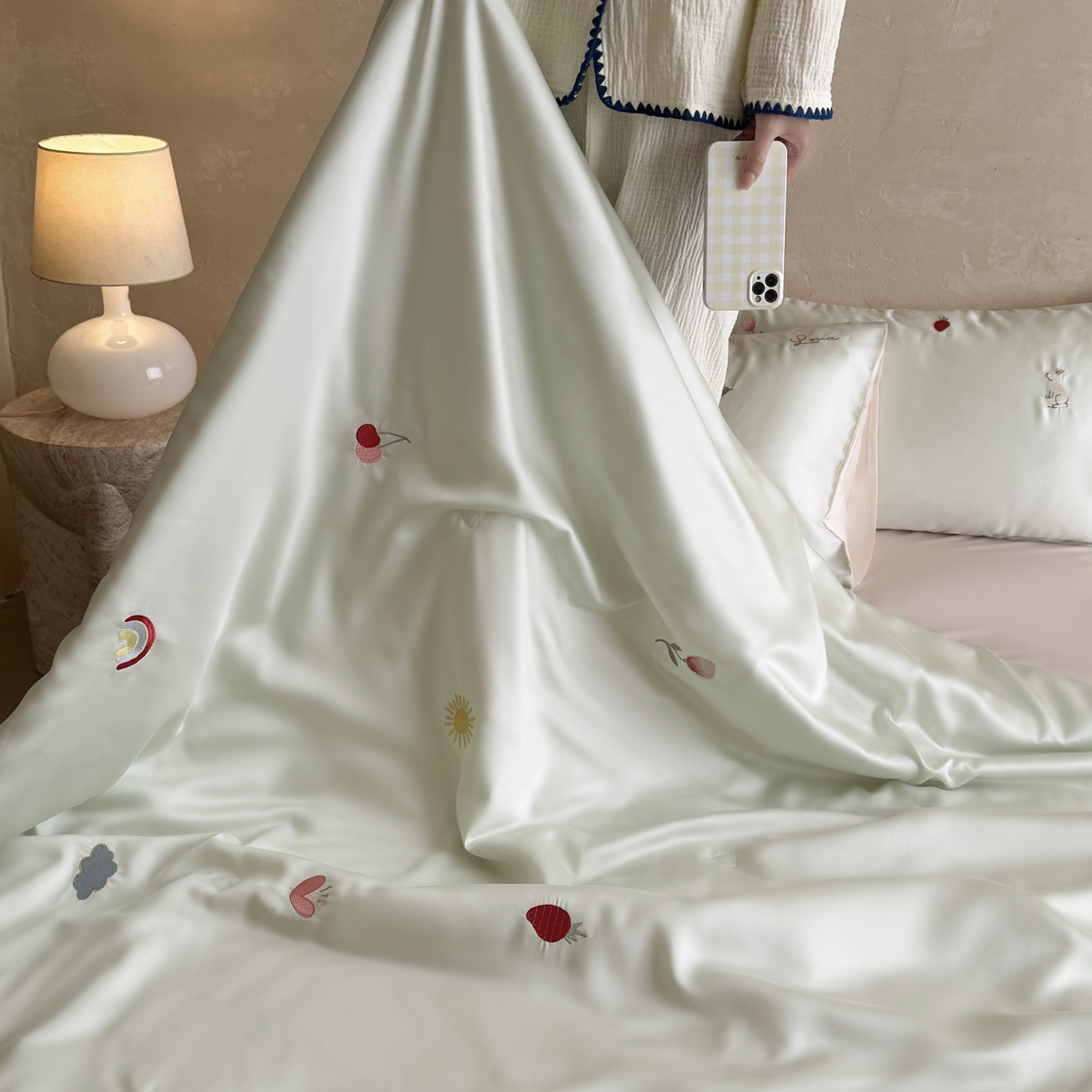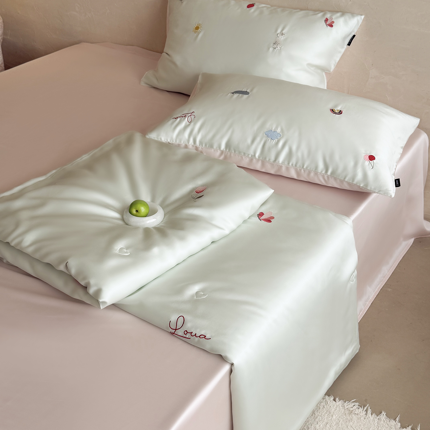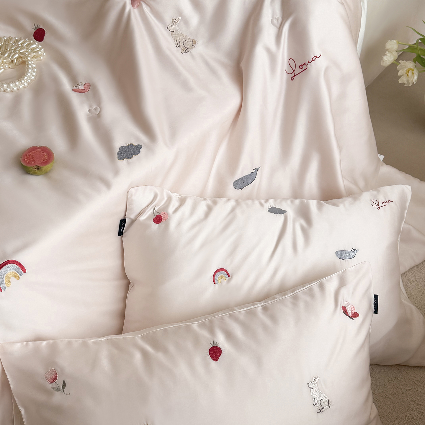 当前位置: 91家纺网 > 商品网购 > 被子 > 莱赛尔夏被 > 鹿班家居 2026夏季新品60S兰精天丝刺绣夏被系列-彩虹小兔 粉&白