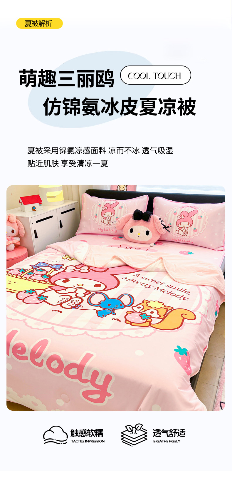 商品名称:(总)暮思家居 2026新款正版授权A类大版数码印花三丽鸥1200D冰丝凉席可组合仿锦氨夏被