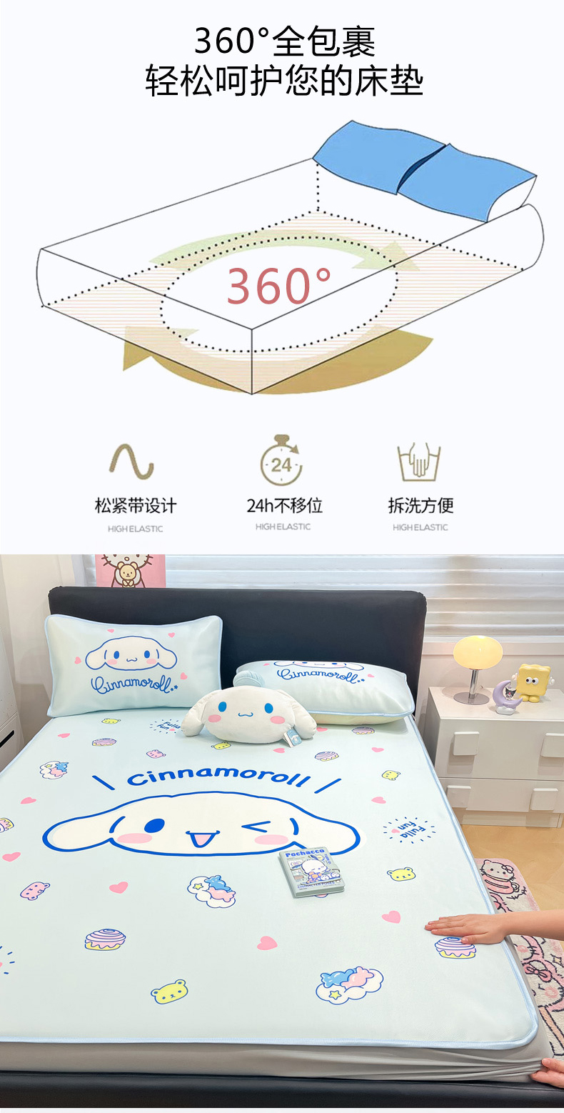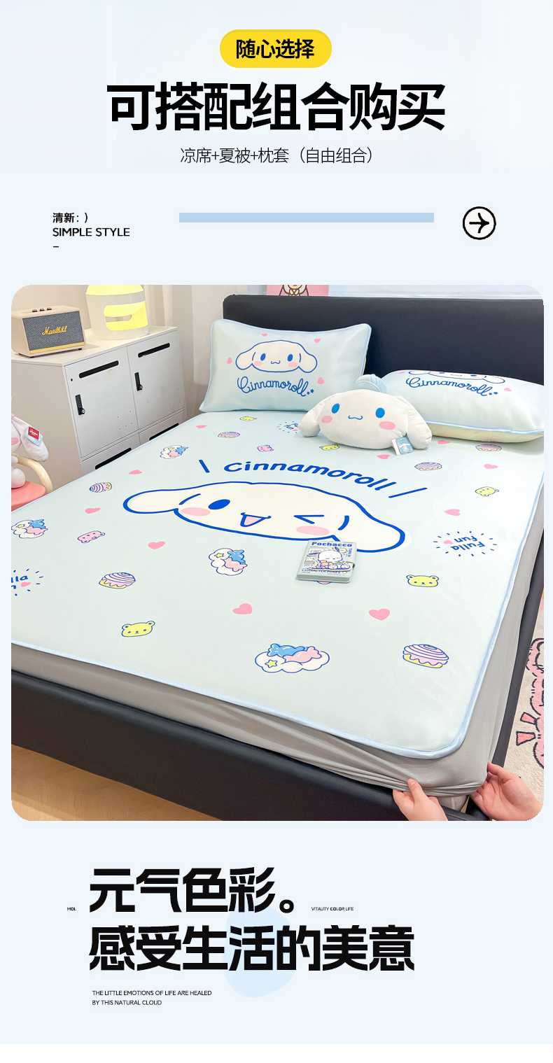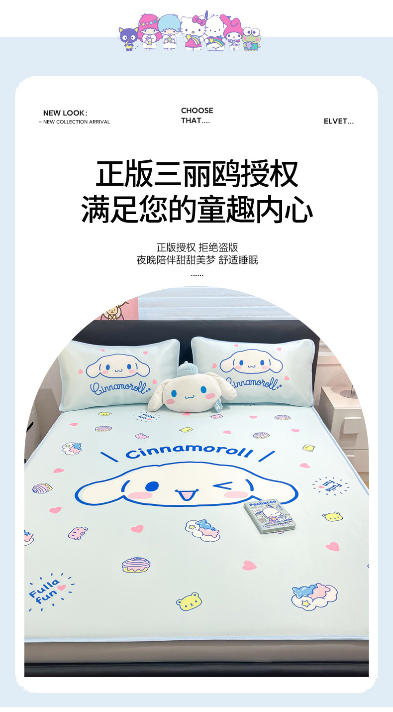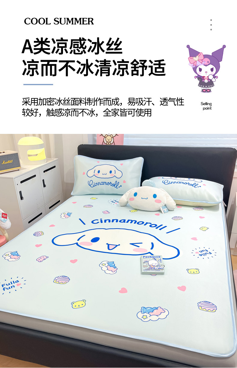 当前位置: 91家纺网 > 商品网购 > 床上用品 > 凉席 > 冰丝席 > 暮思家居 2026新款正版授权A类大版数码印花三丽鸥1200D冰丝凉席可组合仿锦氨夏被 床笠款-开心玉桂狗