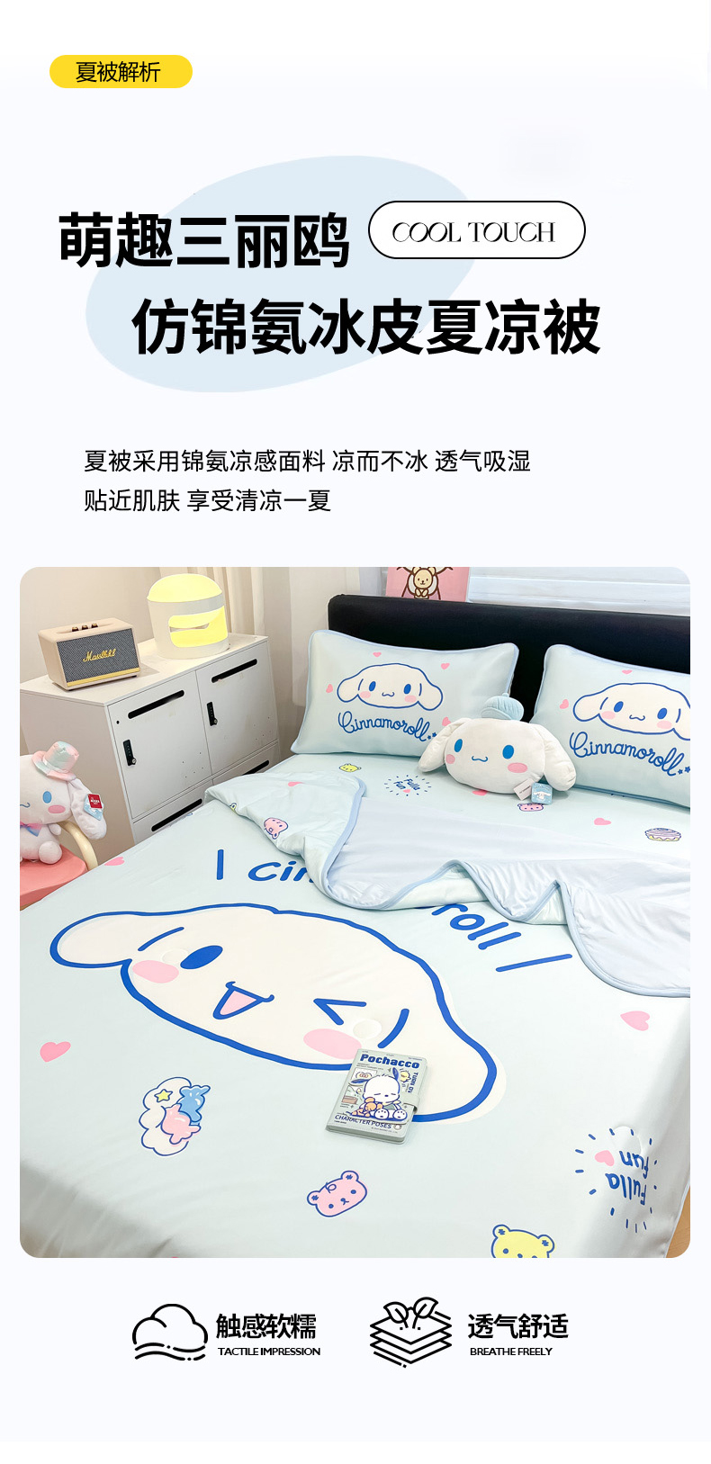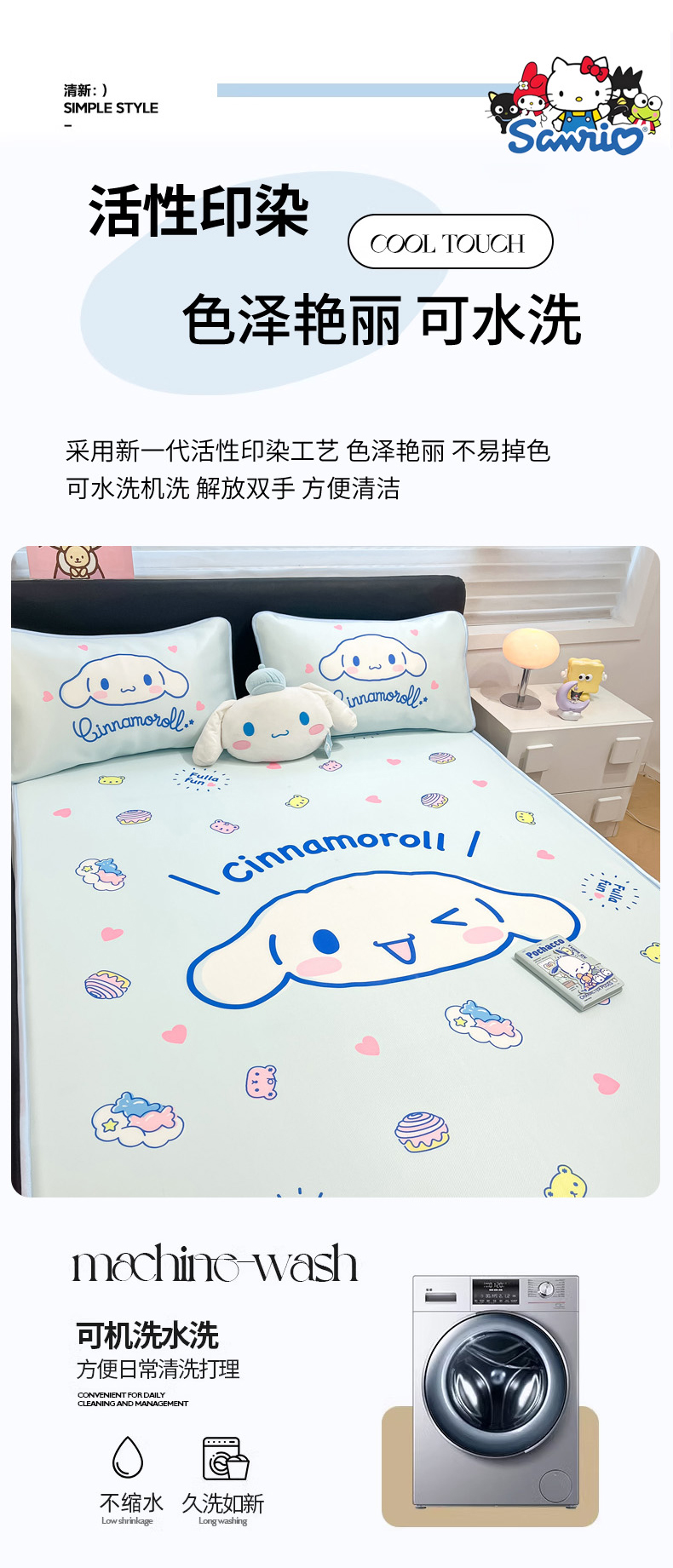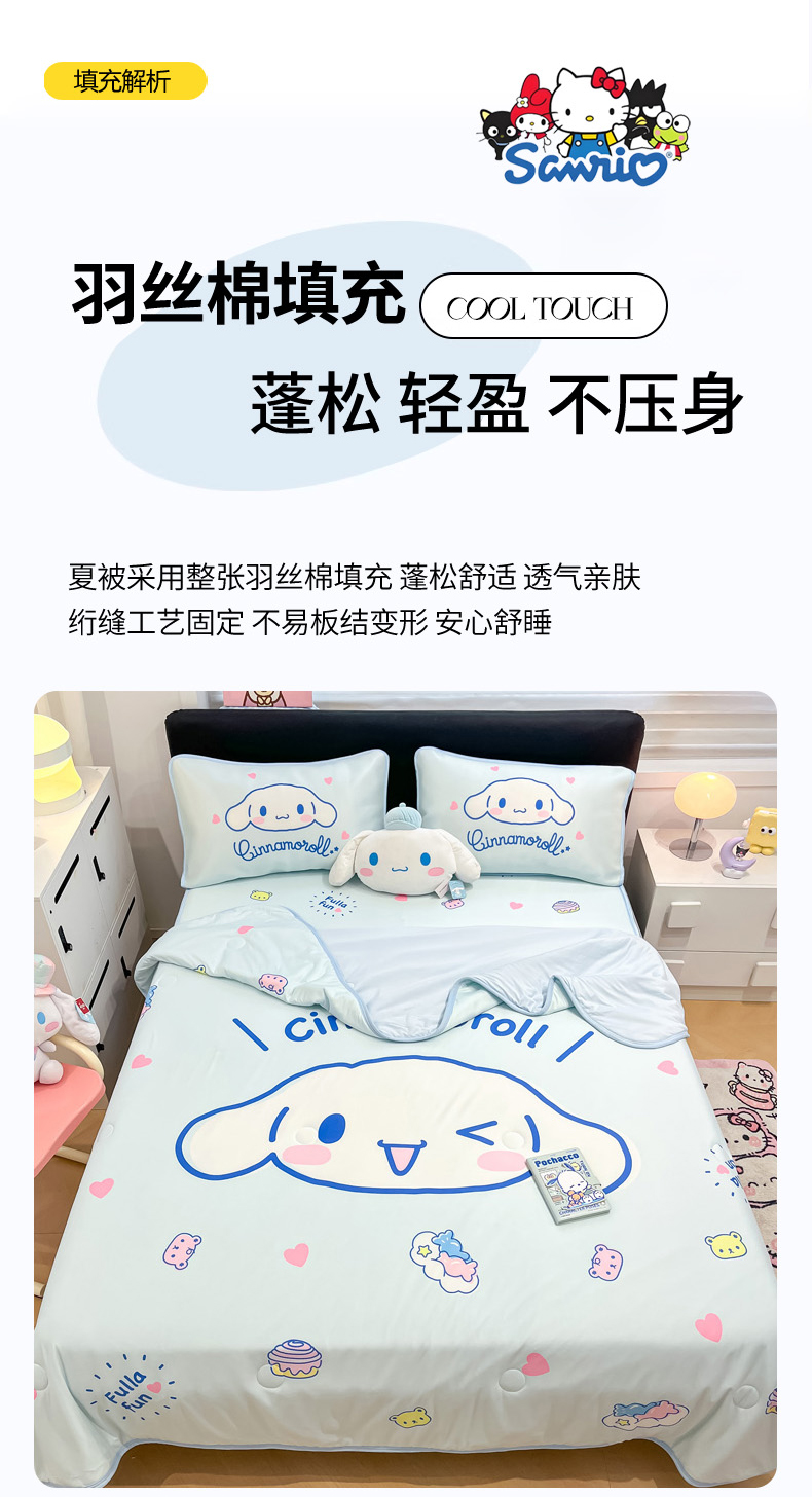 当前位置: 91家纺网 > 商品网购 > 床上用品 > 凉席 > 冰丝席 > 暮思家居 2026新款正版授权A类大版数码印花三丽鸥1200D冰丝凉席可组合仿锦氨夏被 床笠款-开心玉桂狗