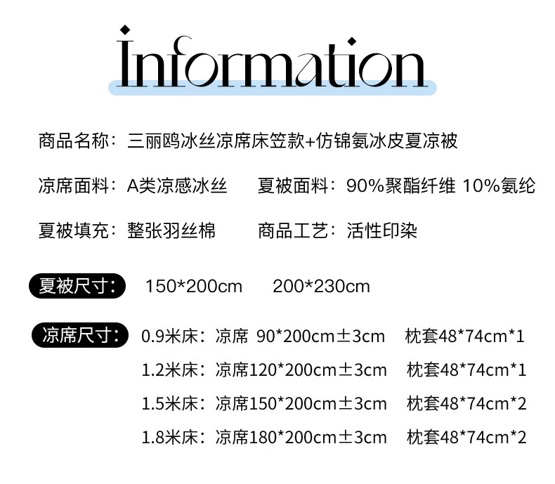 150x200cm单凉席+200x230cm夏被+枕套一对 | ¥153.00 |
