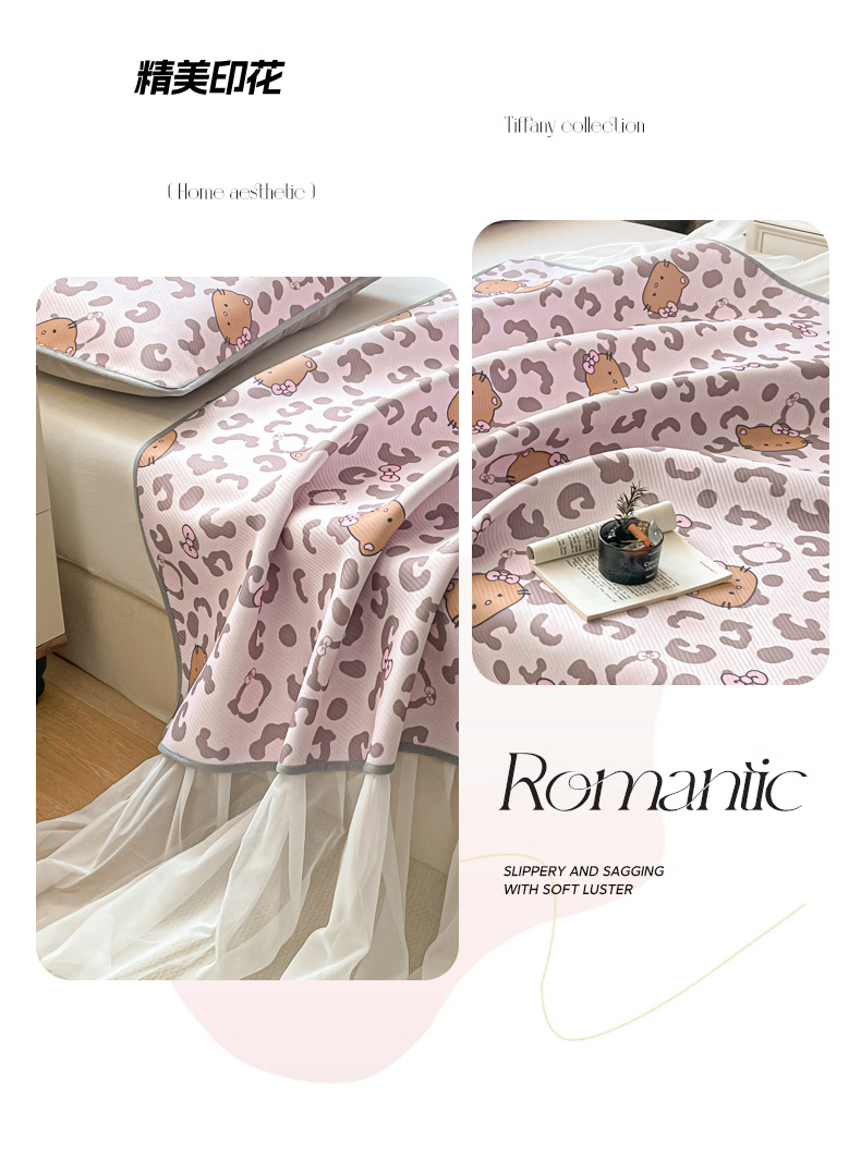 (总)柒月家居 2026新款凉感丝小清新乳胶凉席夏被四件套系列,蓝格甜猫,爱心小熊,豹纹精灵,粉格凯蒂,格调,花季,蓝块汪仔,奶盖猫咪,碎花派对,桃桃奶猫,星梦小熊,星星月亮,字母小熊