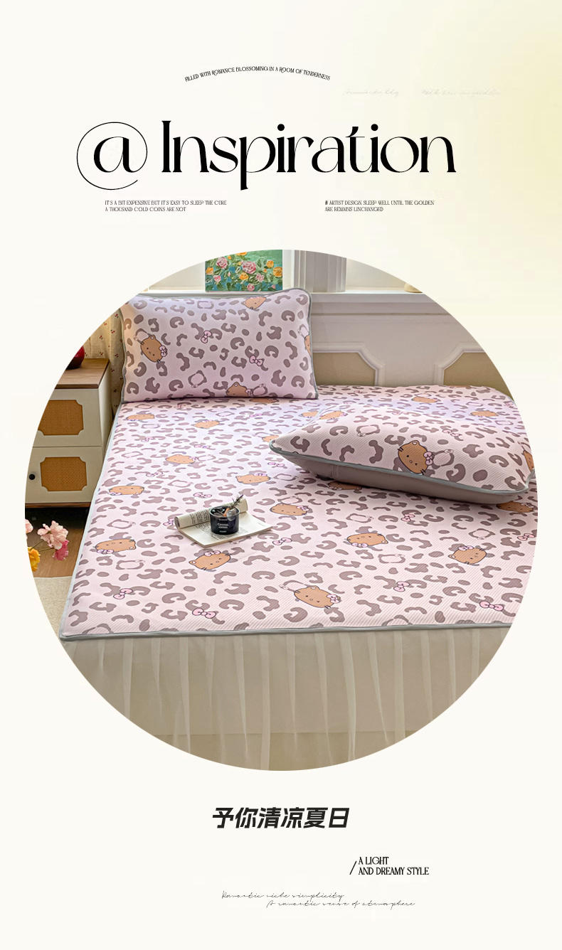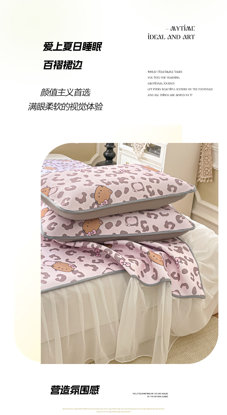 (总)柒月家居 2026新款凉感丝小清新乳胶凉席,蓝格甜猫,爱心小熊,豹纹精灵,粉格凯蒂,格调,花季,蓝块汪仔,奶盖猫咪,碎花派对,桃桃奶猫,星梦小熊,星星月亮,字母小熊