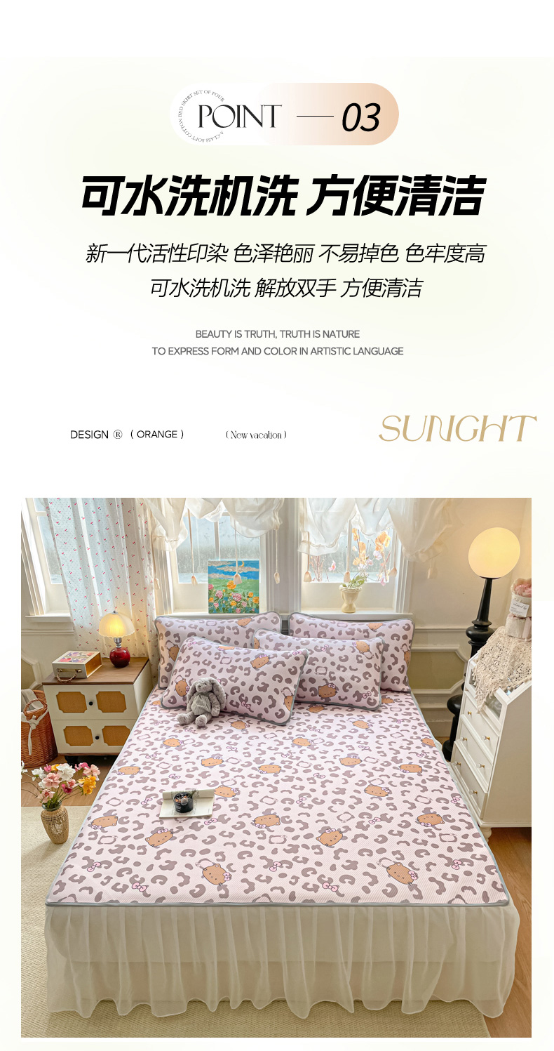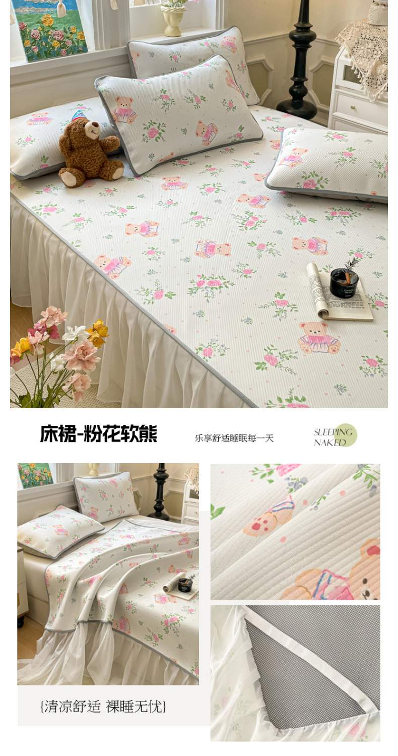 (总)柒月家居 2026新款斜纹凉感豆豆床裙款凉席,床裙-蓝雾花枝,床裙-粉豹黑皮,床裙-粉花软熊,床裙-粉蓝萌猫,床裙-花花精灵,床裙-花筐奶兔,床裙-玫瑰园,床裙-浅夏花兔,床裙-青叶萌物