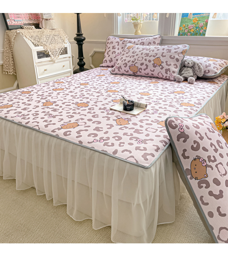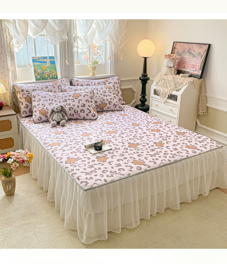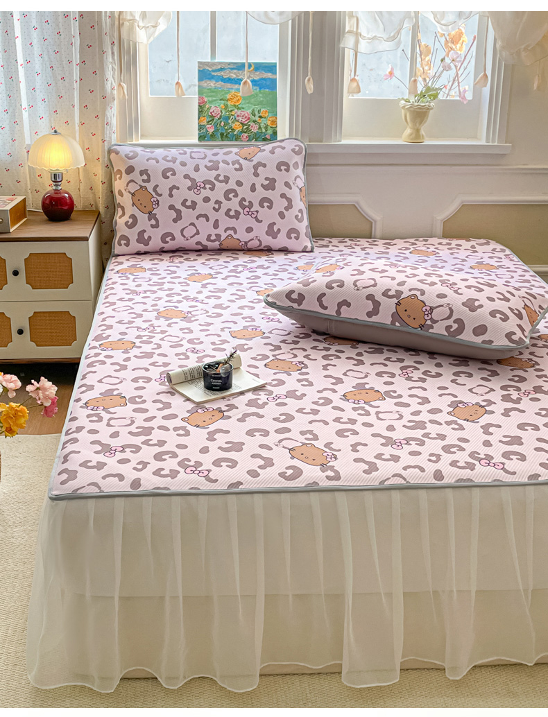 柒月家居 2026新款斜纹凉感豆豆床裙款凉席 床裙-粉豹黑皮