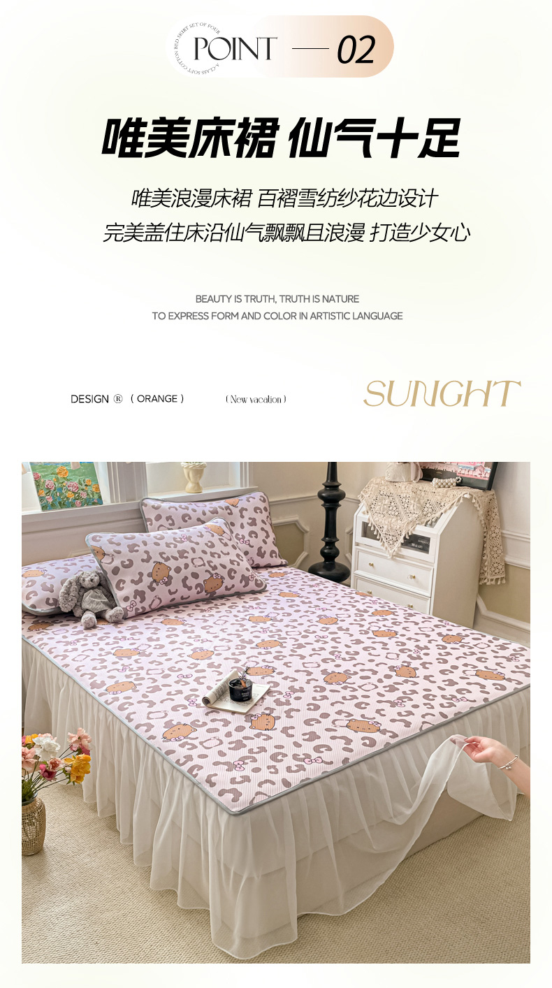 商品名称:柒月家居 2026新款斜纹凉感豆豆床裙款凉席 床裙-粉豹黑皮
