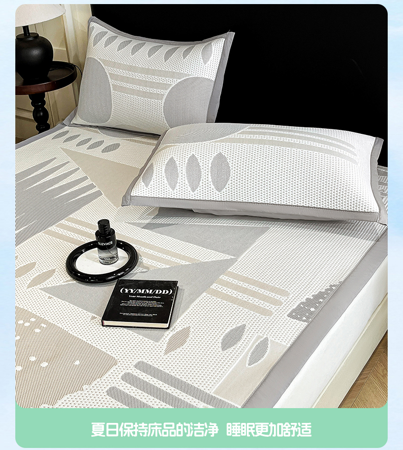商品名称:雅诗帛 2026新款PE凉感丝凉席三件套-几何 几何-灰