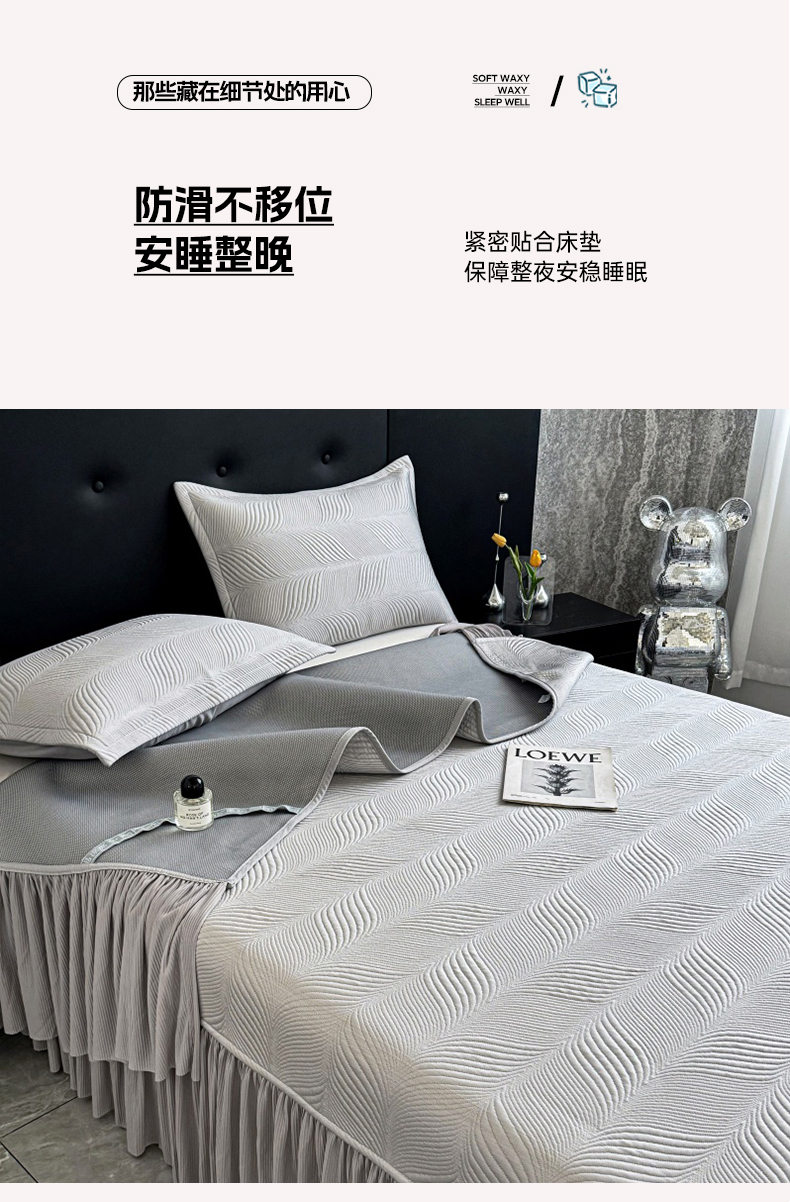 商品名称:红夫人 2026新款PE高分子复合凉感席韩版床裙款凉席三件套-冰川 冰川-灰色
