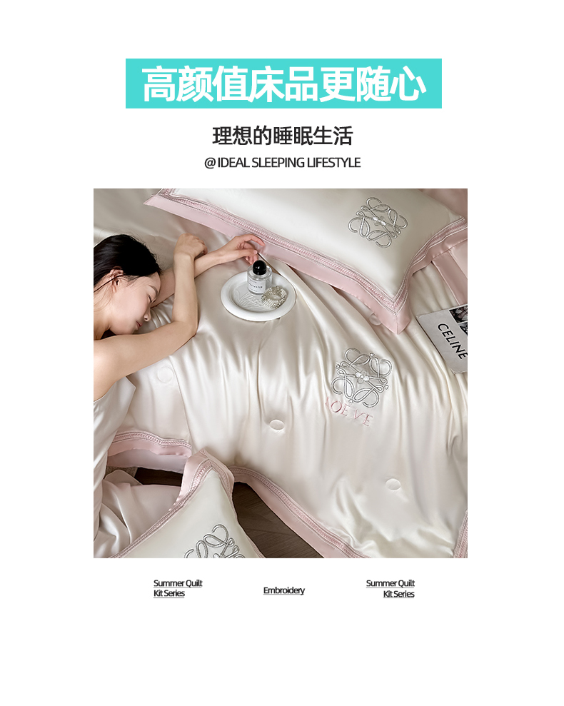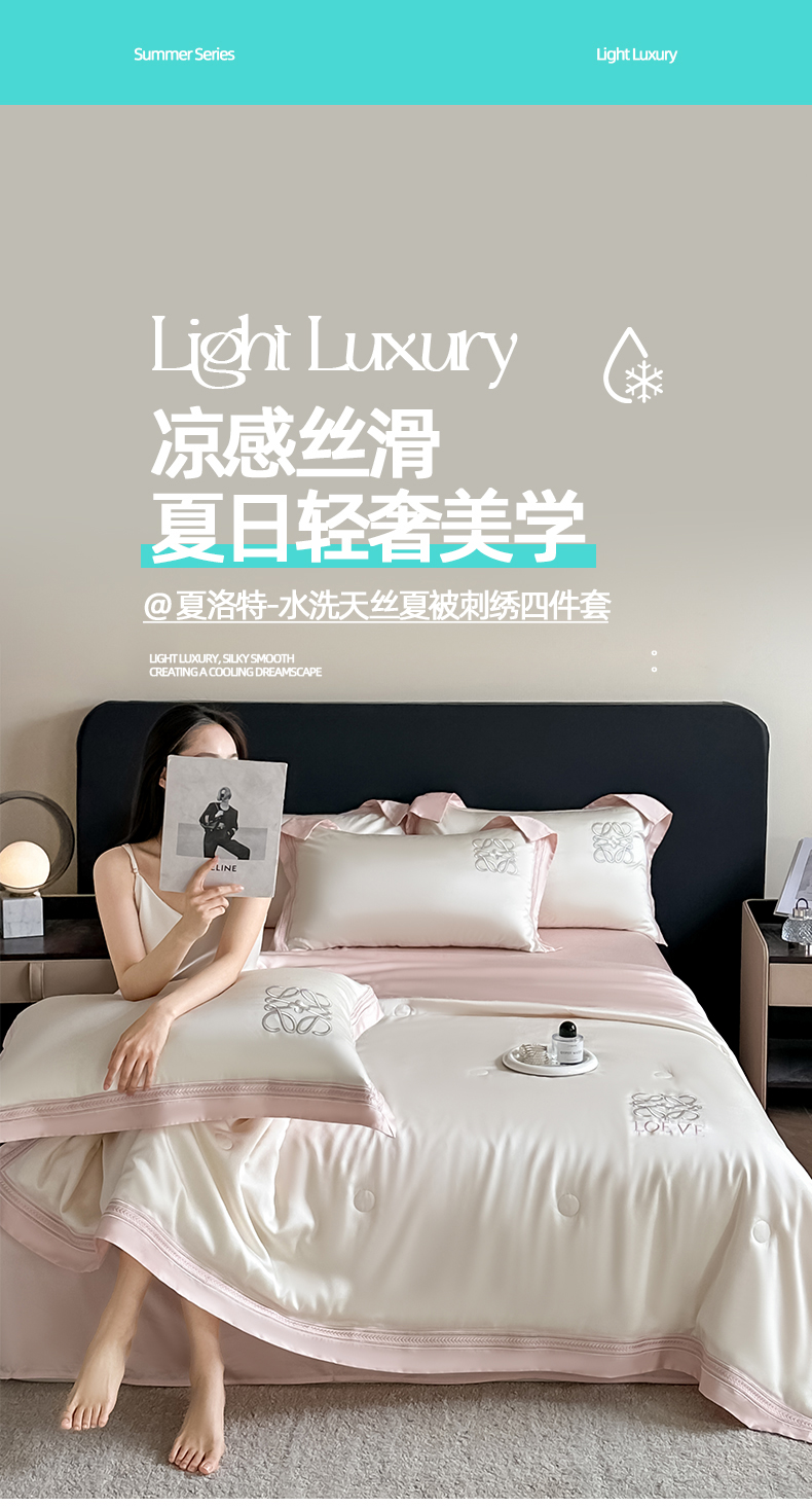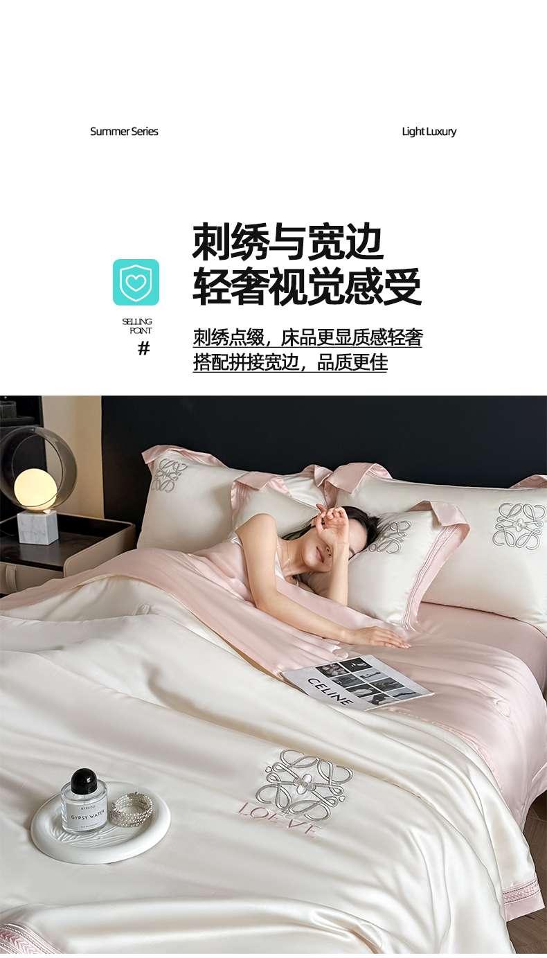 当前位置: 91家纺网 > 商品网购 > 床品套件 > 四件套 > 水洗真丝四件套 > 置顶家纺 2026新款水洗天丝夏被刺绣四件套-夏洛特 夏洛特-白+粉