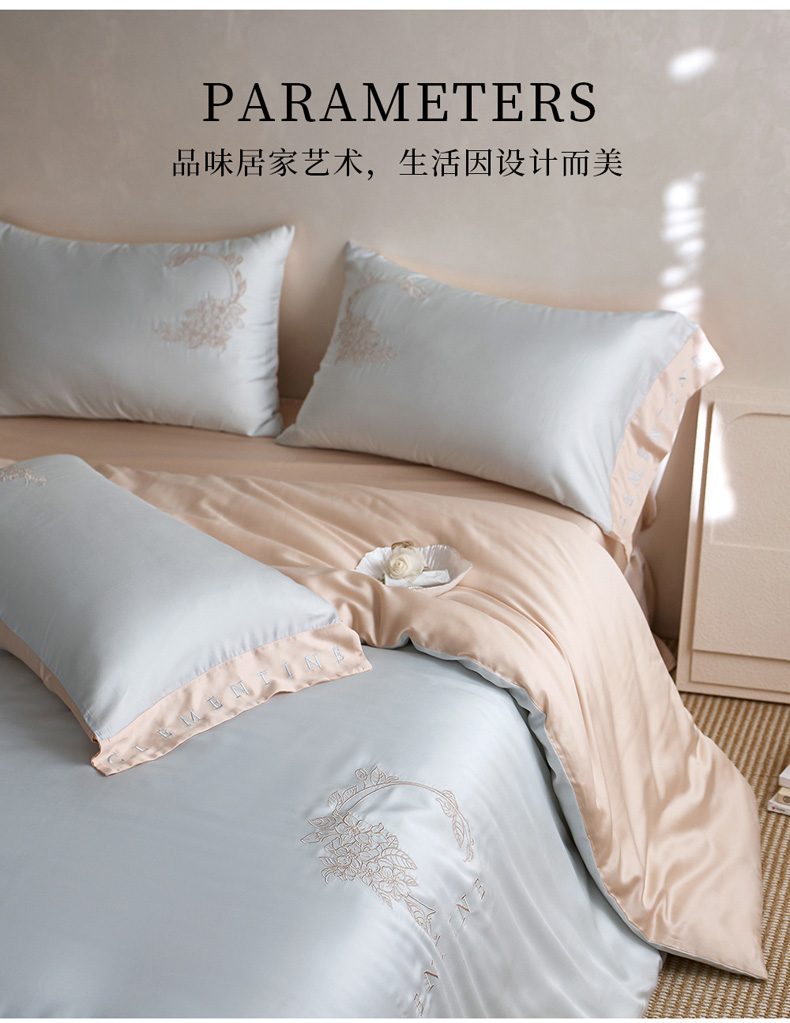 (总)爱缦 2025新款100支新疆长绒棉刺绣四件套-时光系列,时光-薄荷青,时光-芙蓉粉,时光-元气白桃