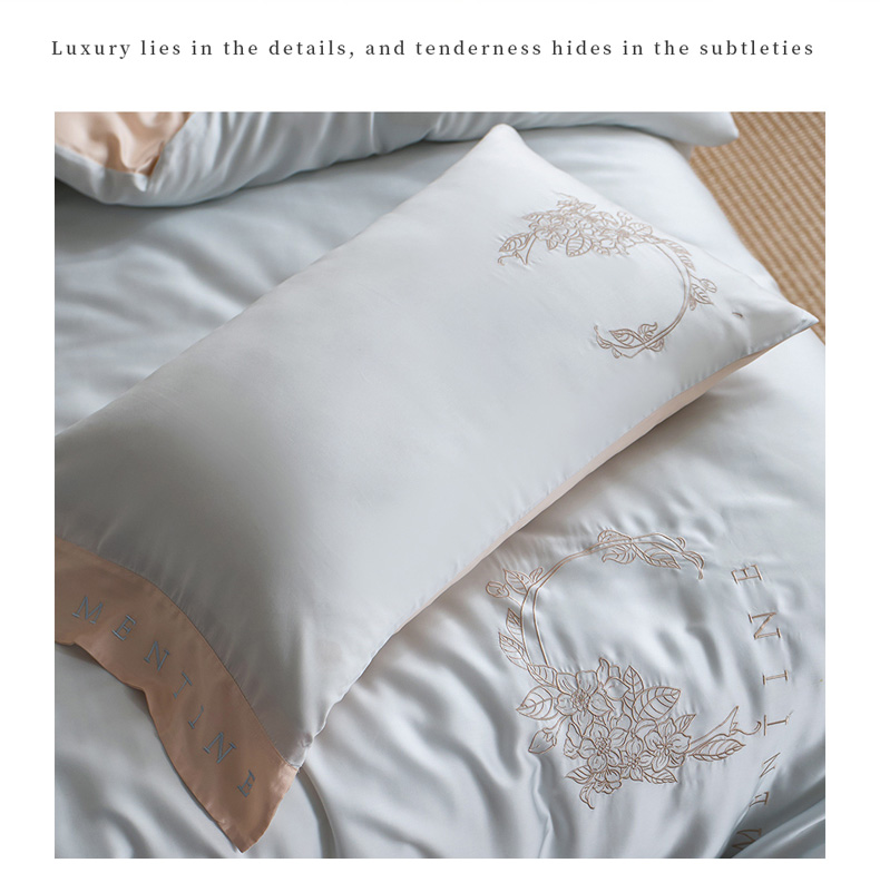 商品名称:爱缦 2026新款60s兰精天丝四件套-马吉拉系列-风格一 蓝米杏