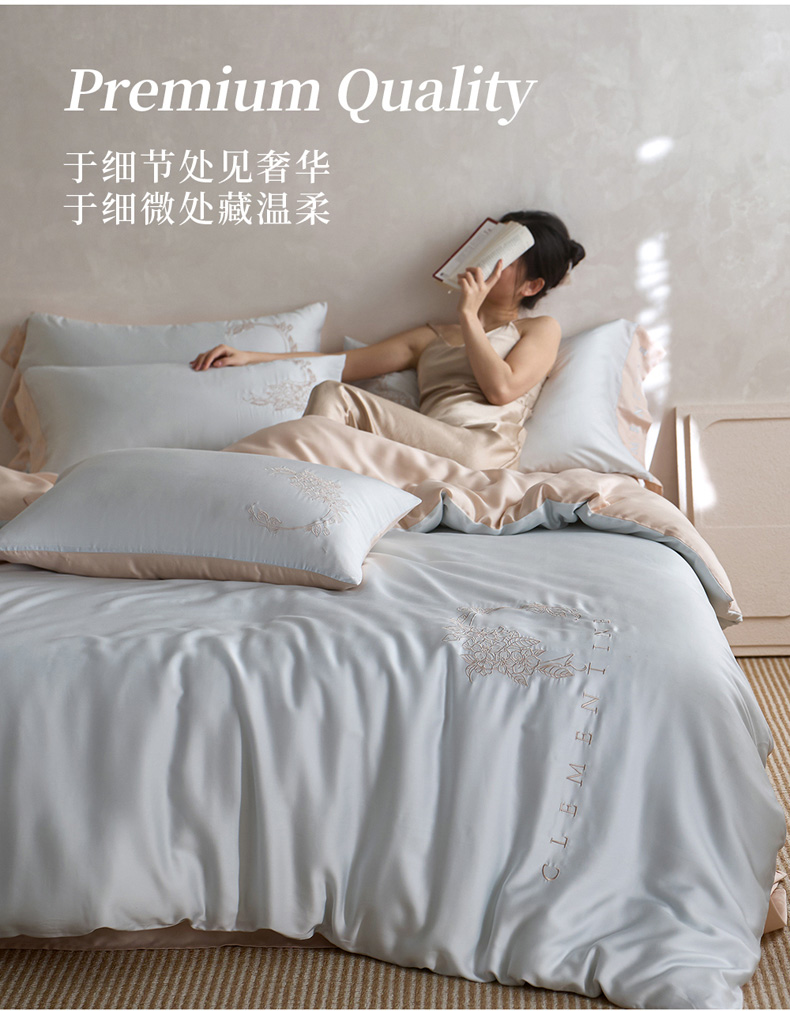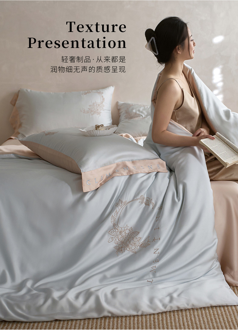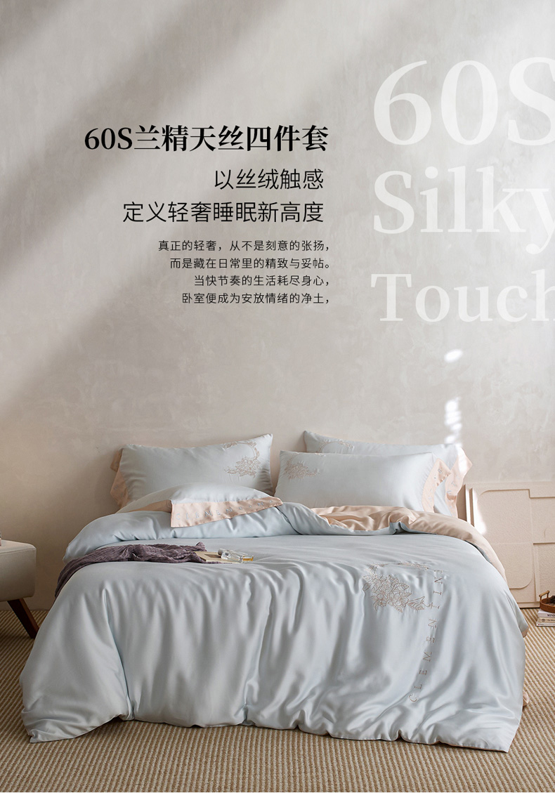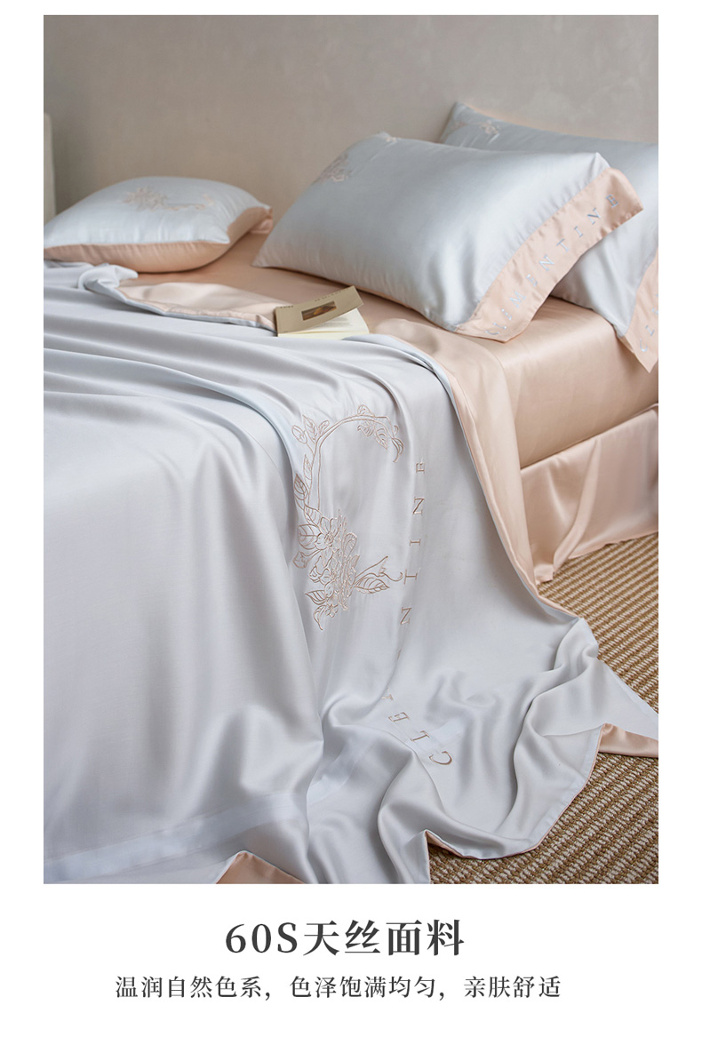(总)爱缦 新款60支莱赛尔四件套-至真系列,蓝米驼,米白粉,浅紫,玉粉