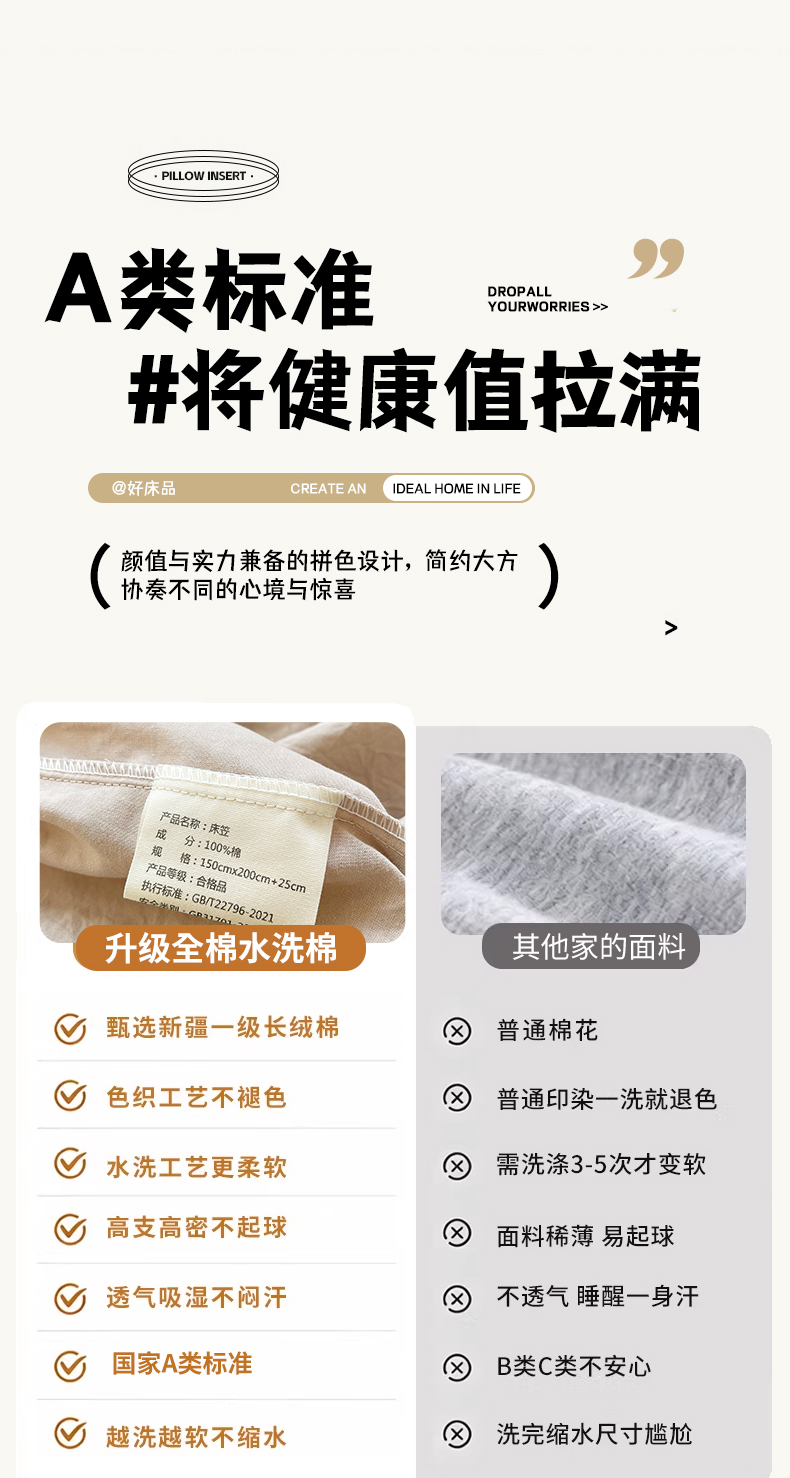 商品名称:春皖家纺 2026春夏新款全棉纯棉水洗棉单品系列床笠单件床笠单品-B版单床笠 素雅卡其