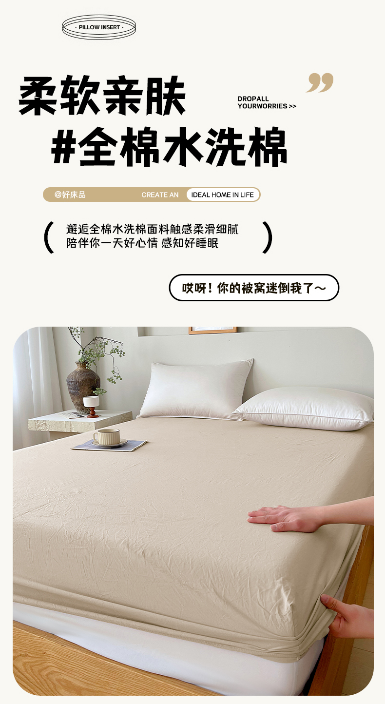 春皖家纺 2026春夏新款全棉纯棉水洗棉单品系列床笠单件床笠单品-B版单床笠 素雅卡其