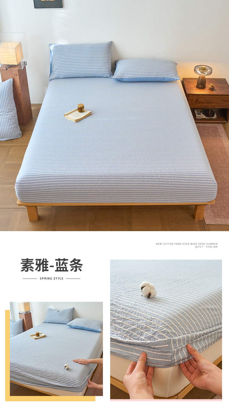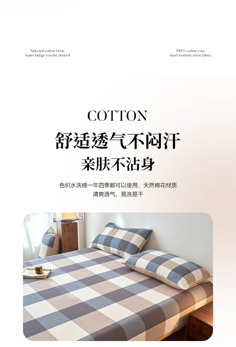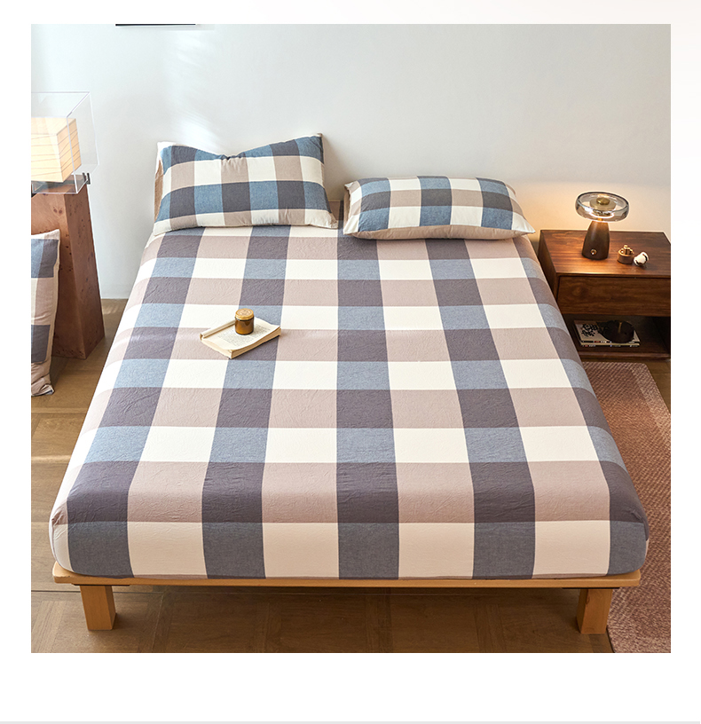春皖家纺 2026春夏新款全棉纯棉水洗棉单品系列床笠单件床笠单品-A版单床笠 素雅-蓝大格