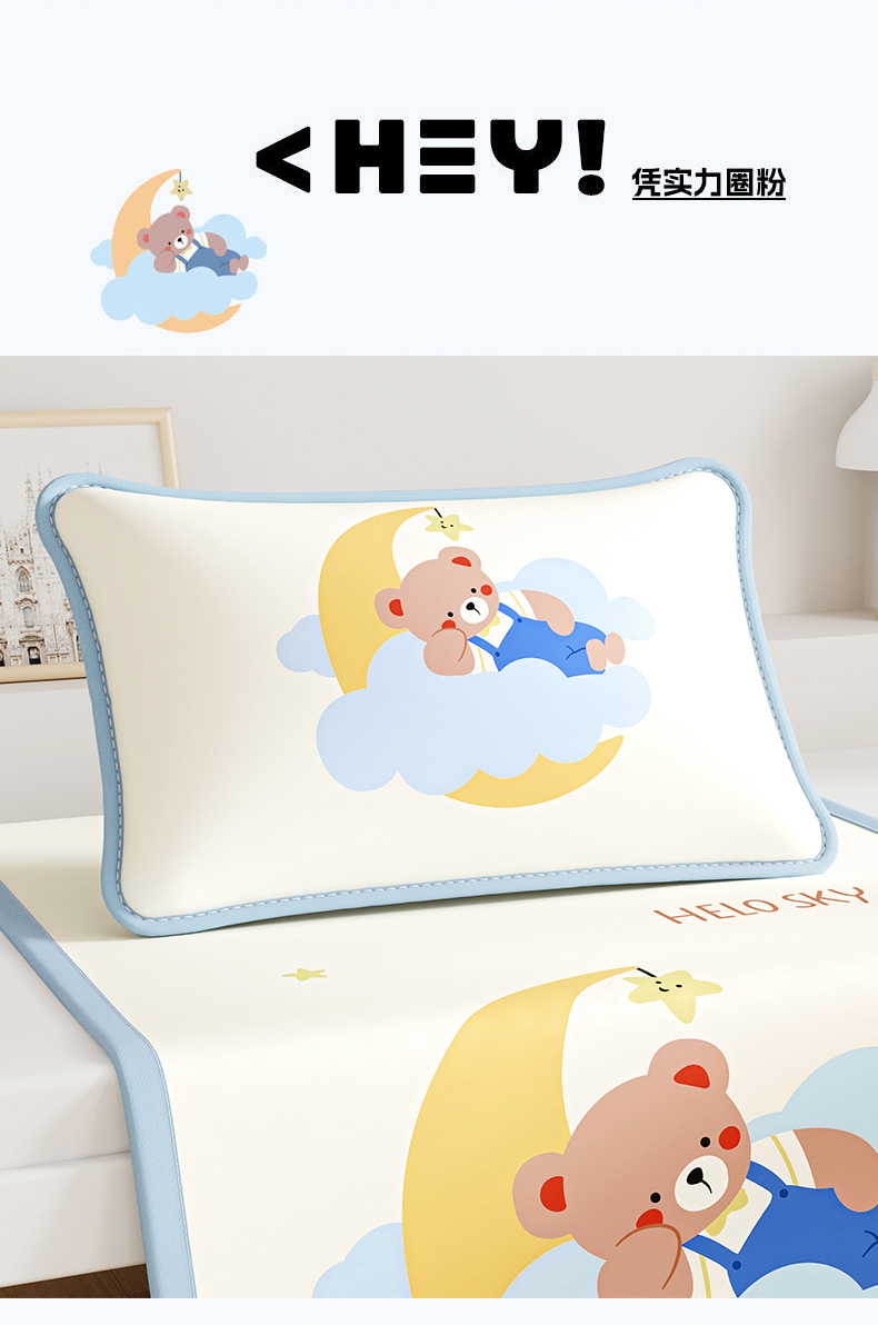 (总)奇丝雅 2026新款夏季A类印花冰豆豆凉席三明治透气网冰丝凉席可机洗学生宿舍上下铺学生床,巴比兔,抱抱熊,饼干熊,海洋世界,卡皮巴拉,蘑菇乐园,甜甜圈,兔宝贝,维尼熊,小企鹅,熊猫家园,叶语