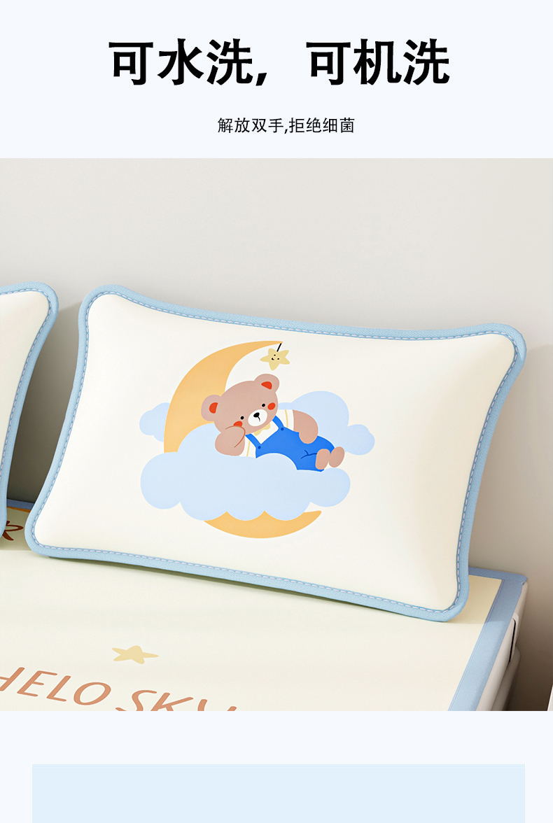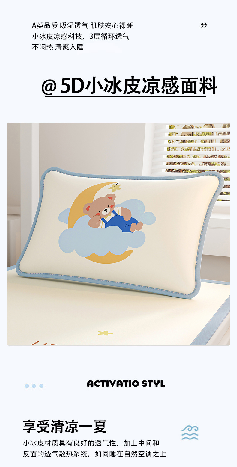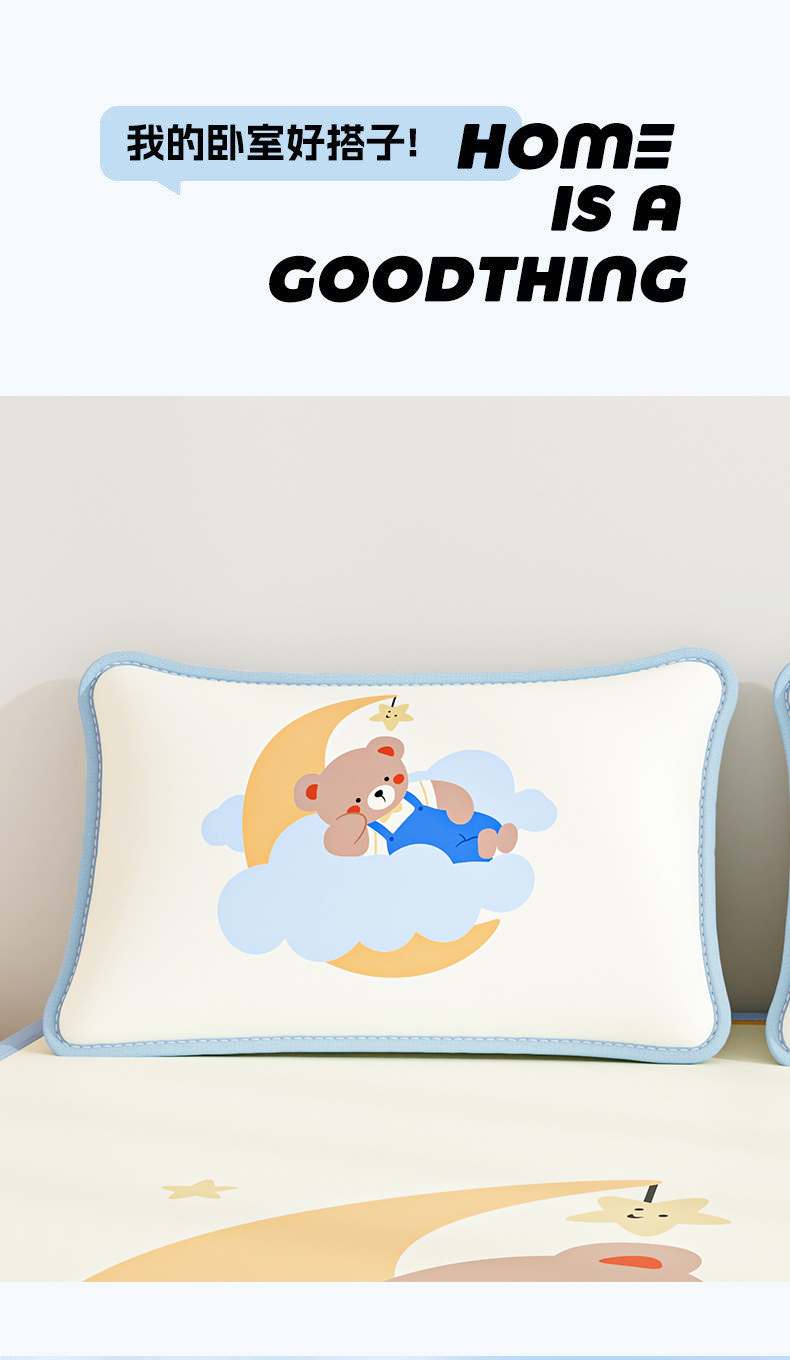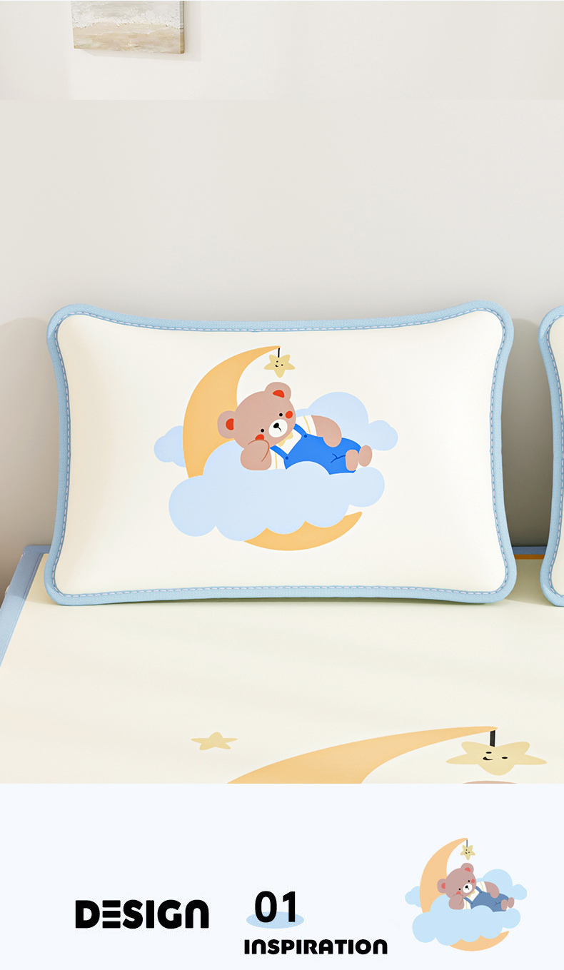 商品名称:奇丝雅 2026夏季A类数码印花卡通冰丝凉席枕套凉感家用儿童可机洗单人学生宿舍48×74 月亮熊