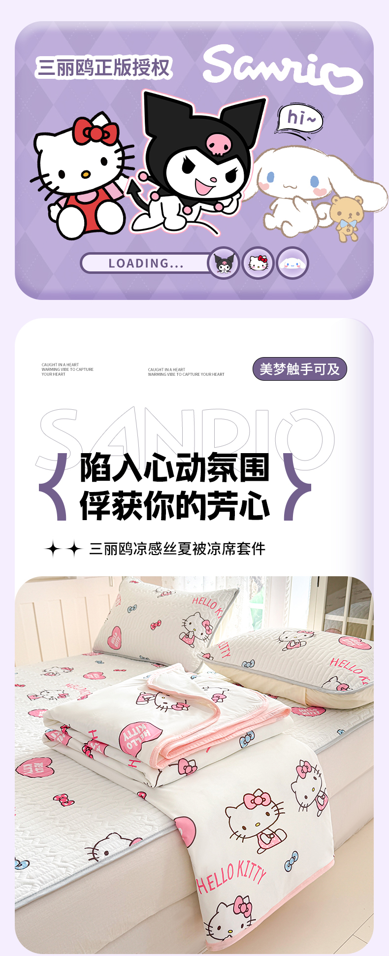 • 91家纺网 家纺一手货源 找家纺 博雅 2026新款三丽鸥A类仿锦氨组合小冰皮夏被夏凉被空调被凉席席子 小版-爱心KT 91家纺网 家纺一手货源 找家纺 博雅 2026新款三丽鸥A类仿锦氨组合小冰皮夏被夏凉被空调被凉席席子 小版-爱心KT