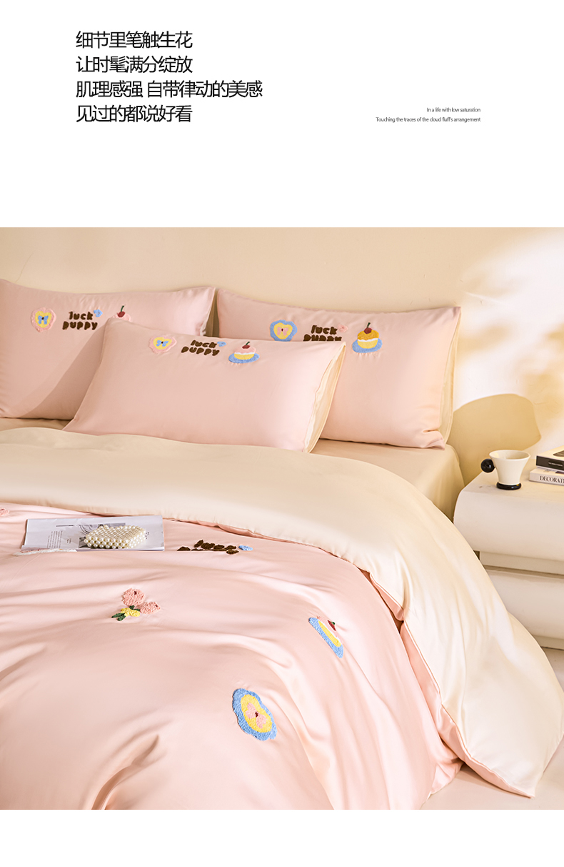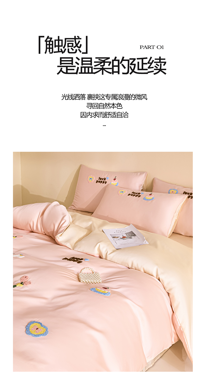 当前位置: 91家纺网 > 商品网购 > 床品套件 > 四件套 > 莱赛尔四件套 > DC 2026新款天丝立体毛巾绣四件套 毛巾绣-半熟蜜桃+元气白桃(初夏小狗)