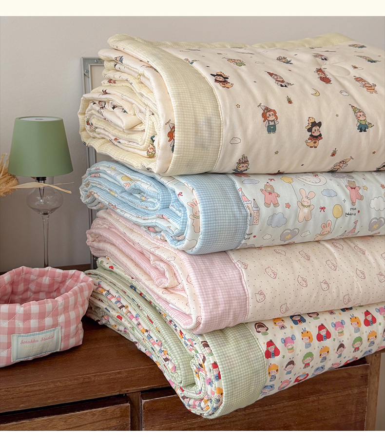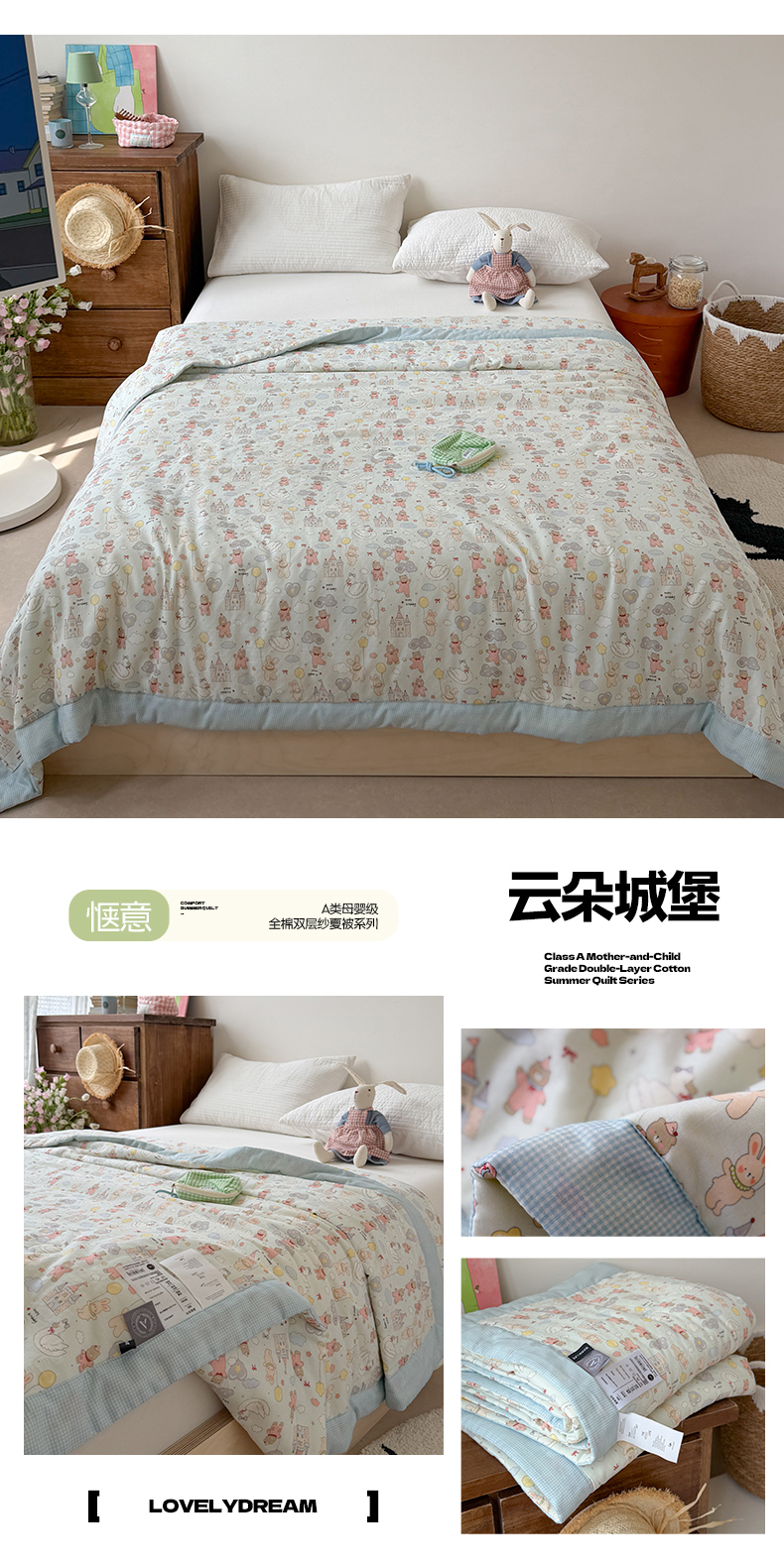 (总)暖生活 2026新款A类母婴级全棉双层纱夏被,波点凯蒂,彩豆乐园,粉黛蝴蝶结,奶黄甜猫,青柠萌宠,星星乐园,云朵城堡,组合
