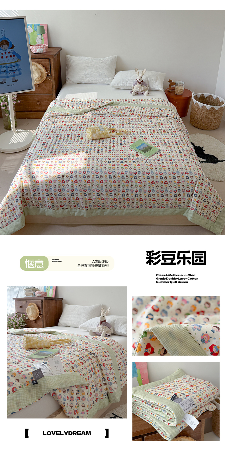 商品名称:暖生活 2026新款A类母婴级全棉双层纱夏被 彩豆乐园