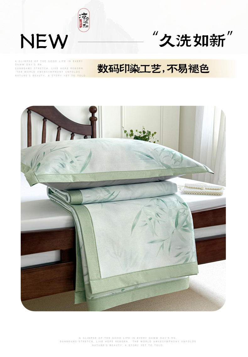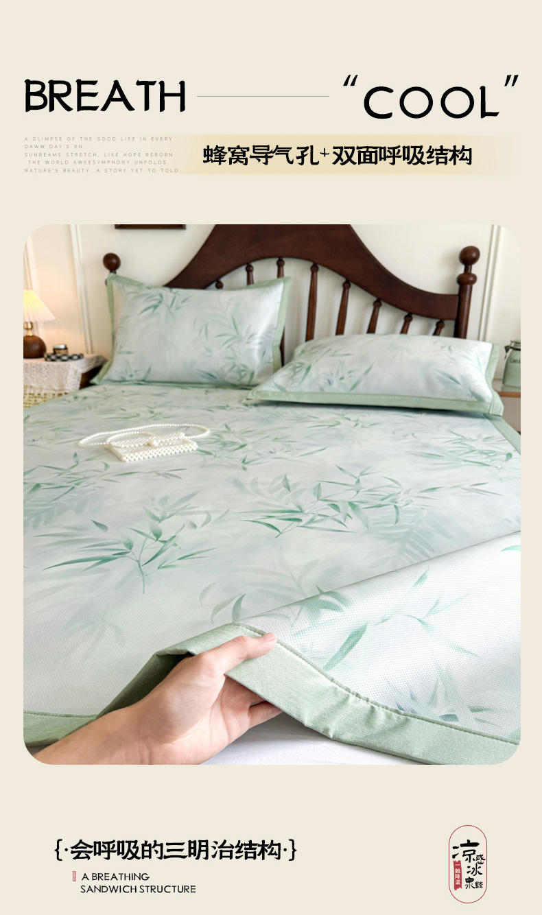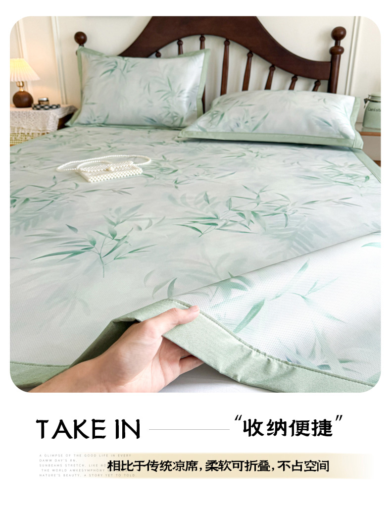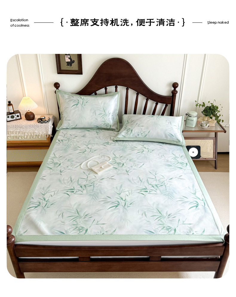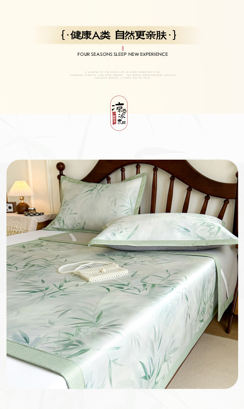 商品名称:倾慕家纺 2026新款A类数码印花冰泉丝凉席 竹潇潇绿