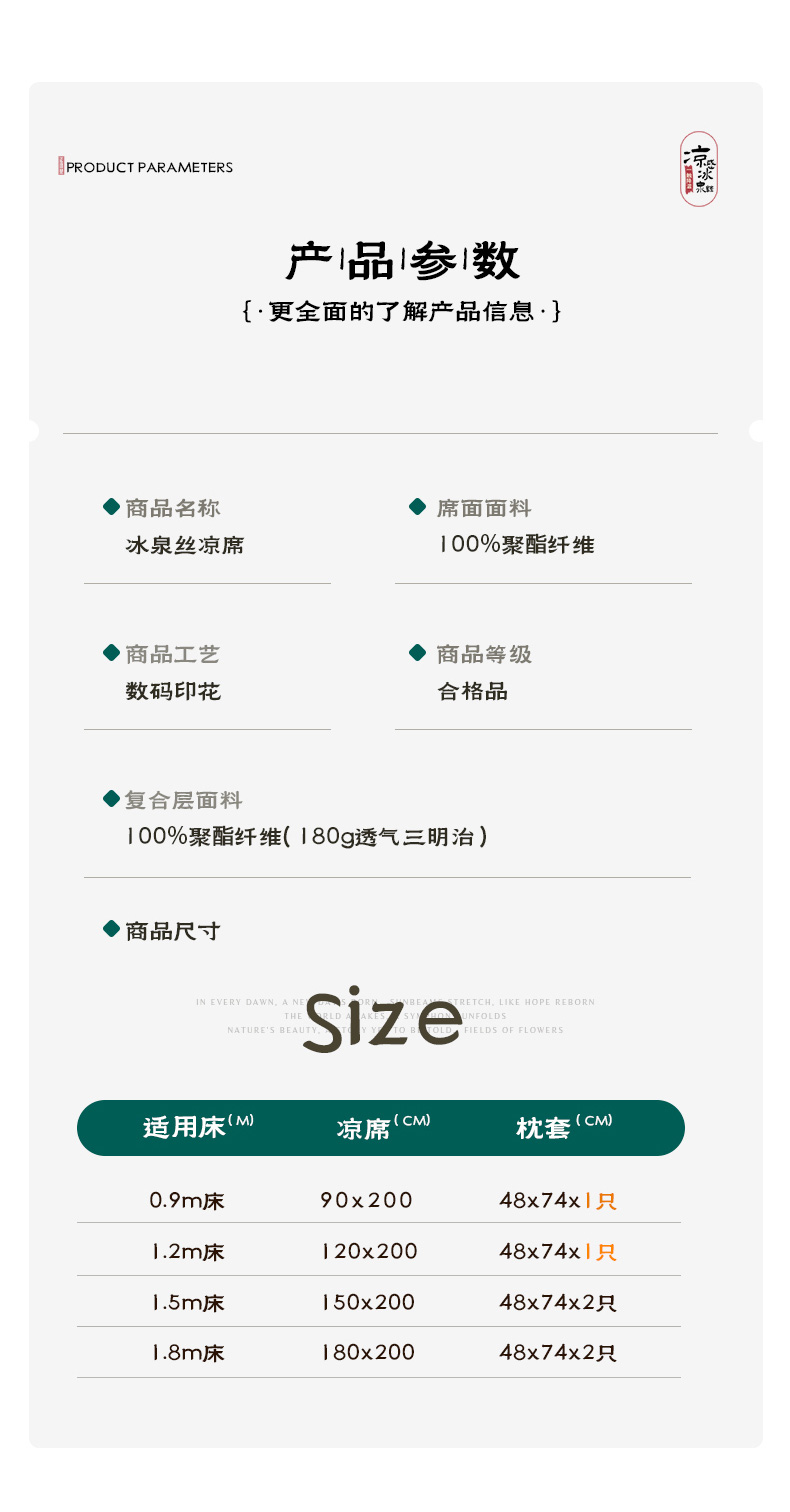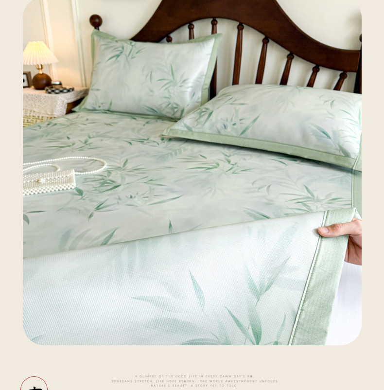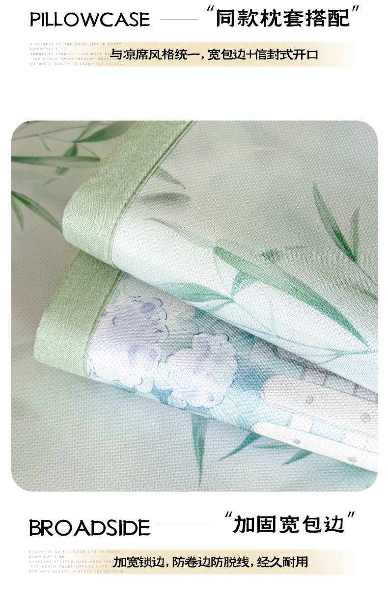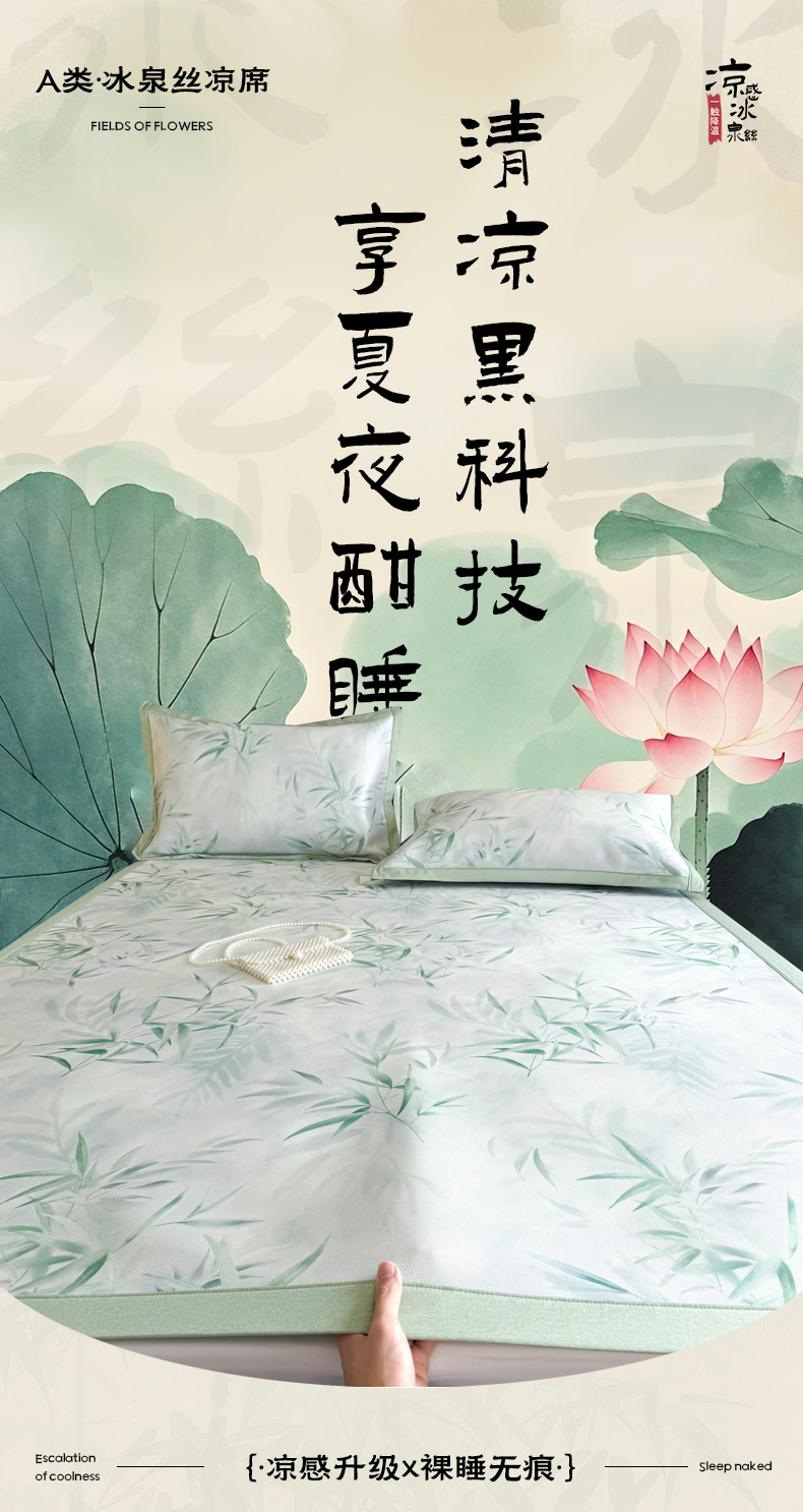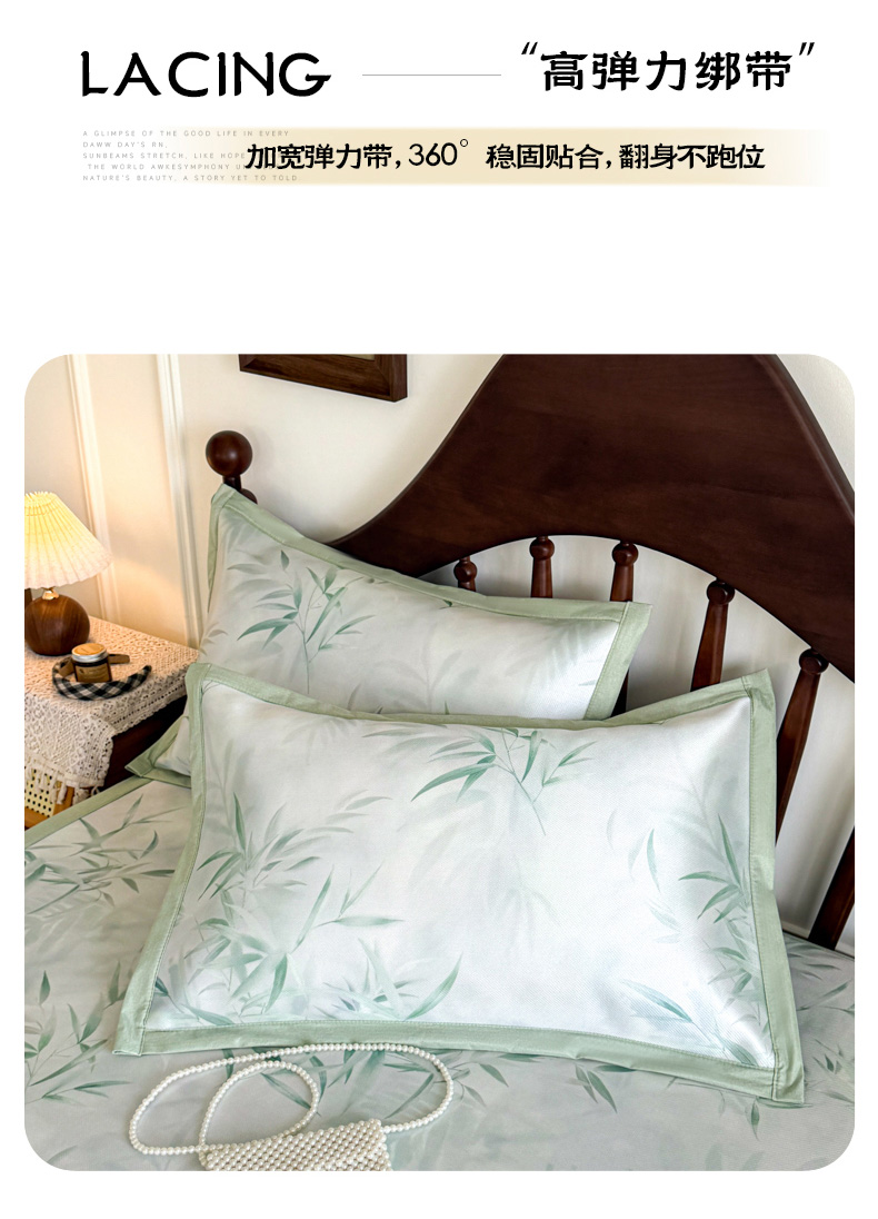 商品名称:倾慕家纺 2026新款A类数码印花冰泉丝凉席 竹潇潇绿