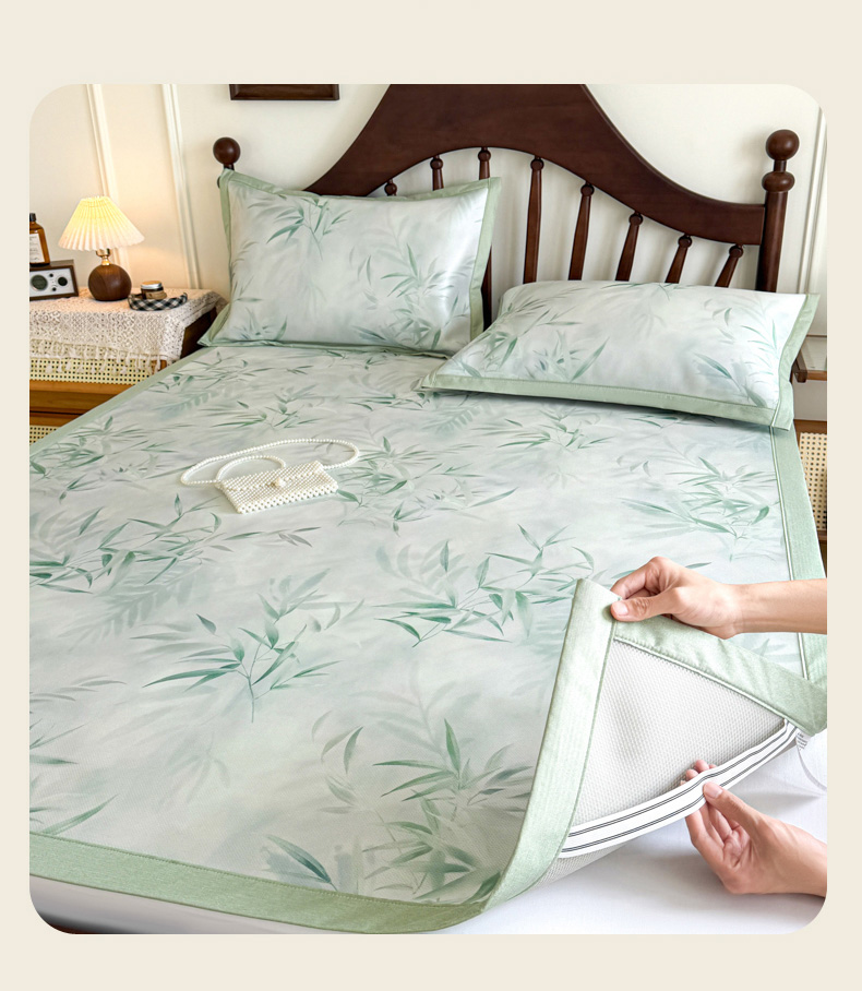 倾慕家纺 2026新款A类数码印花冰泉丝凉席 竹潇潇绿