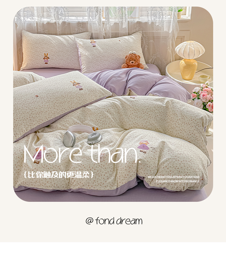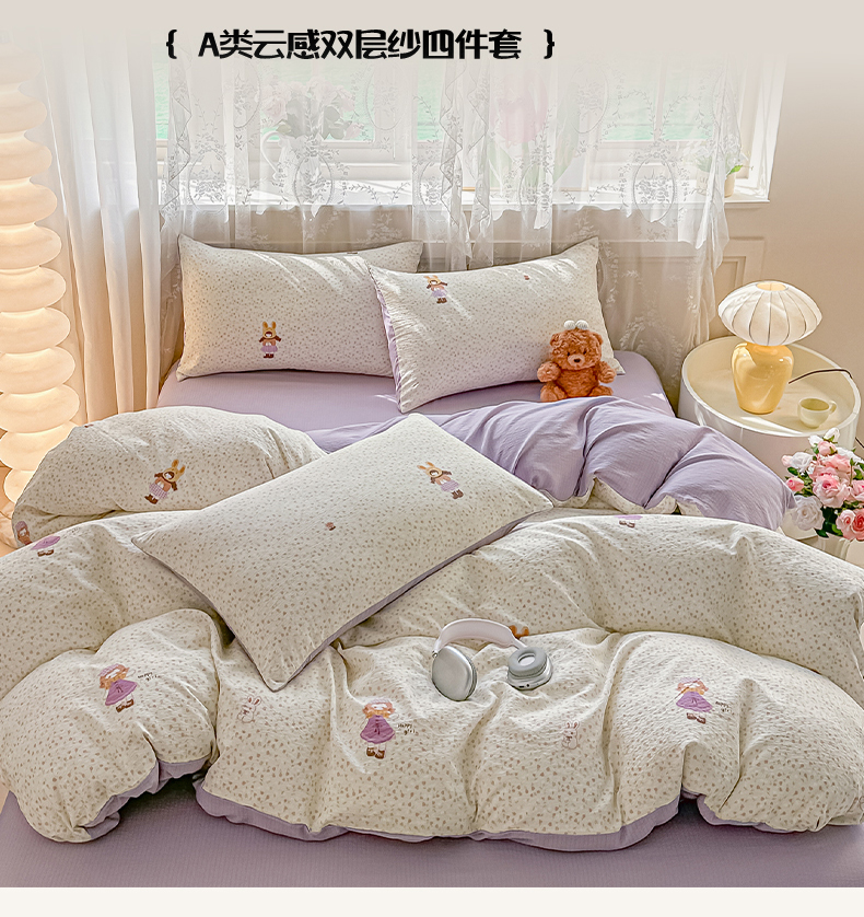 当前位置: 91家纺网 > 商品网购 > 床品套件 > 四件套 > 其它四件套 > 侯先生家纺新款直播爆款云感双层纱皱皱纱四件套小清新水洗棉床笠 小花萝莉
