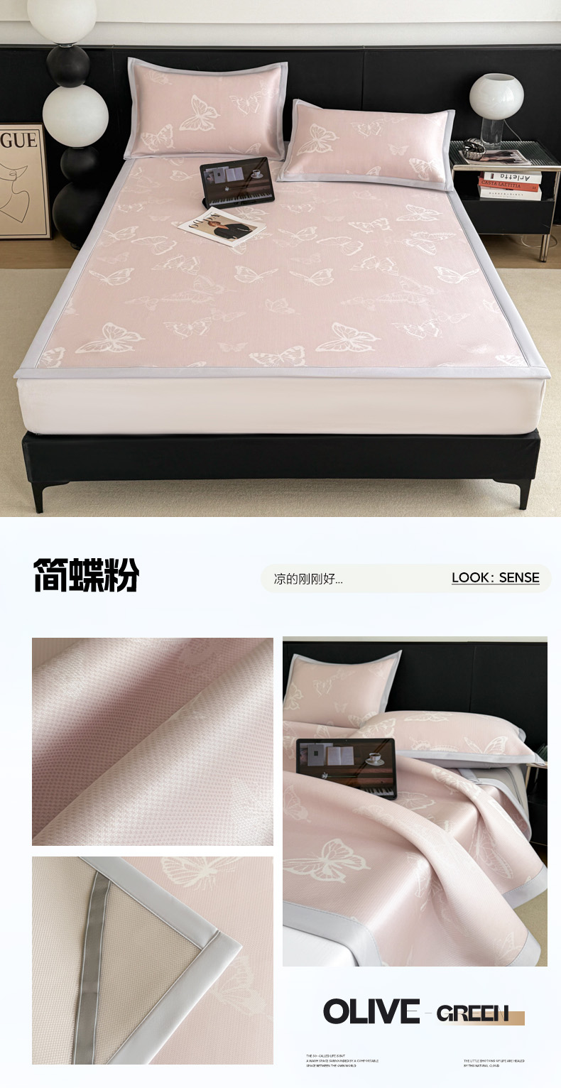 (总)倾慕家纺 2026新款PE50提花凉感冰丝凉席,花星点点粉,花星点点灰,花星点点绿,简蝶粉,简蝶蓝,叶繁粉,叶繁灰,叶繁蓝,叶繁绿,针叶粉,针叶蓝,针叶绿,组合