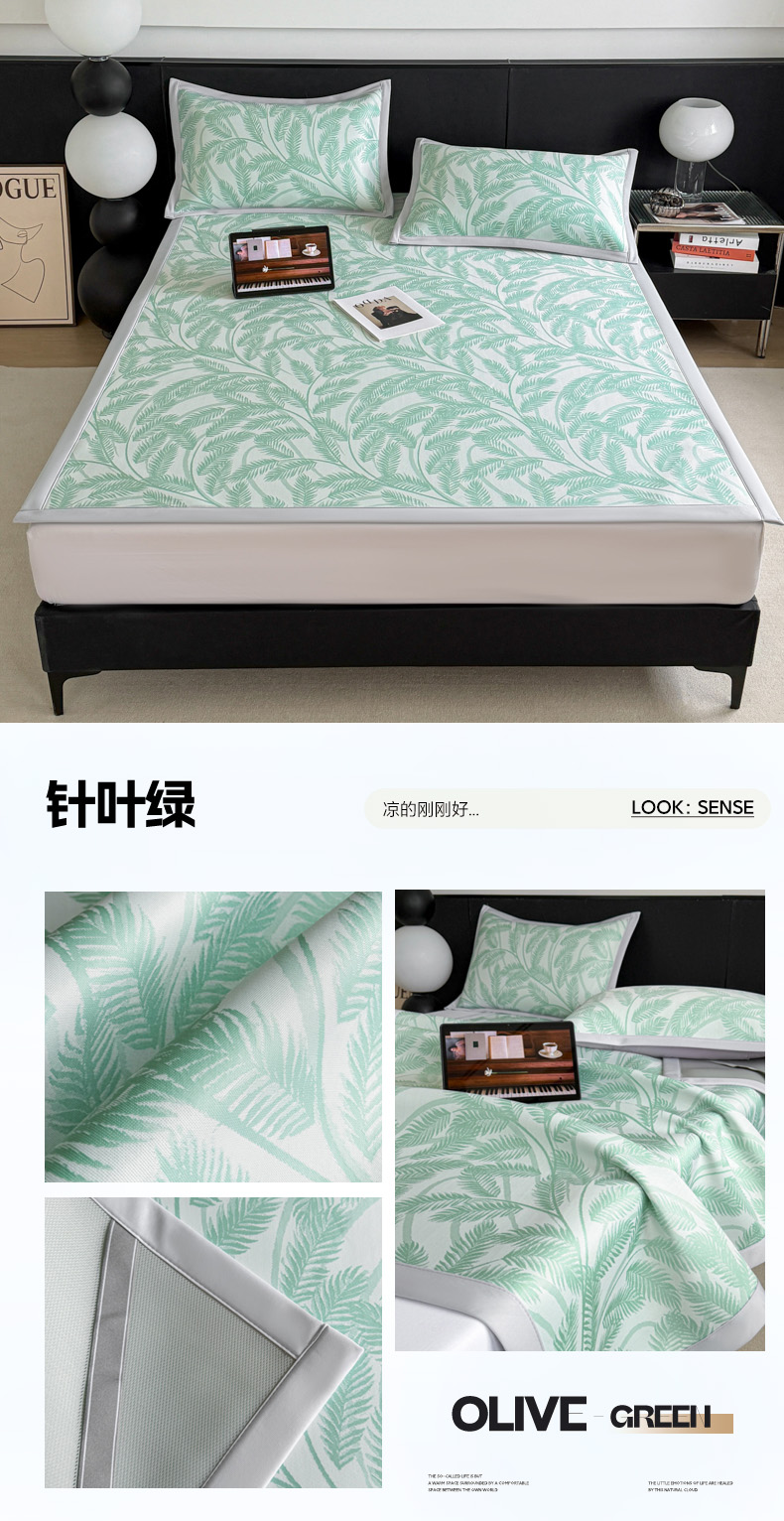 (总)倾慕 2026新款提花凉感凉席床席款三件套系列,清风雅韵灰床席款,清风雅韵绿床席款,情意浓粉床席款,情意浓蓝床席款,情意浓绿床席款,森林奇境粉床席款,森林奇境灰床席款,森林奇境蓝床席款,森林奇境绿床席款,叶之恋蓝床席款,叶之恋绿床席款
