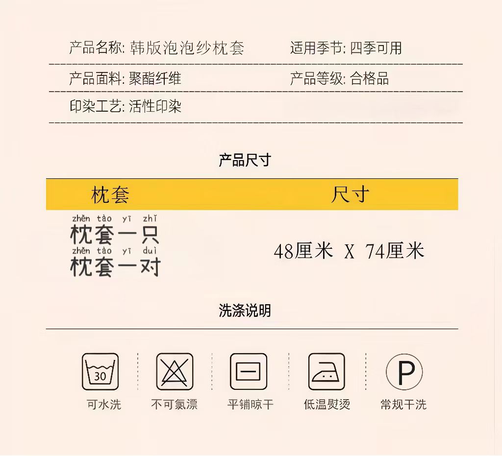 商品名称:(总)梵克保罗 2026新款公主风小清新泡泡纱花边枕套