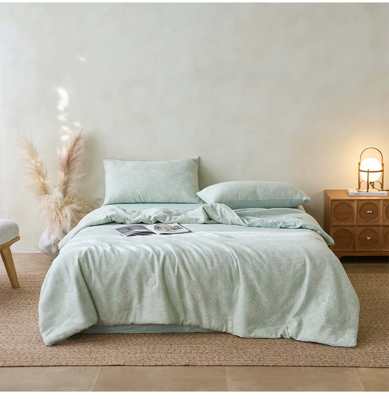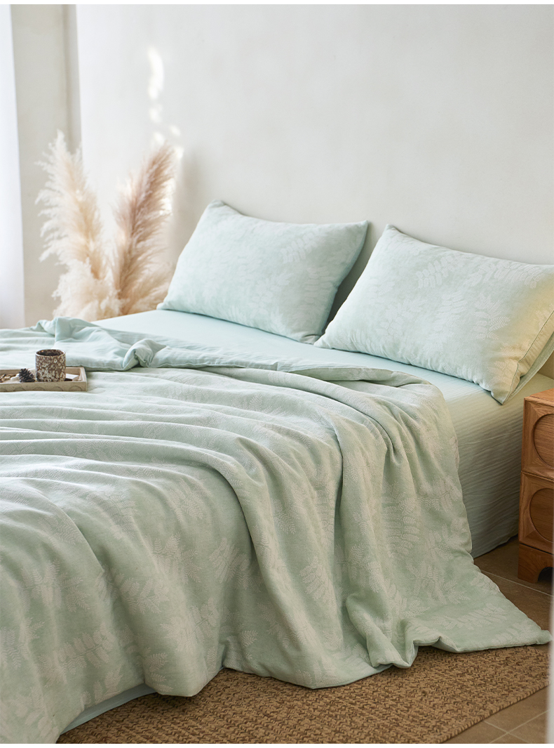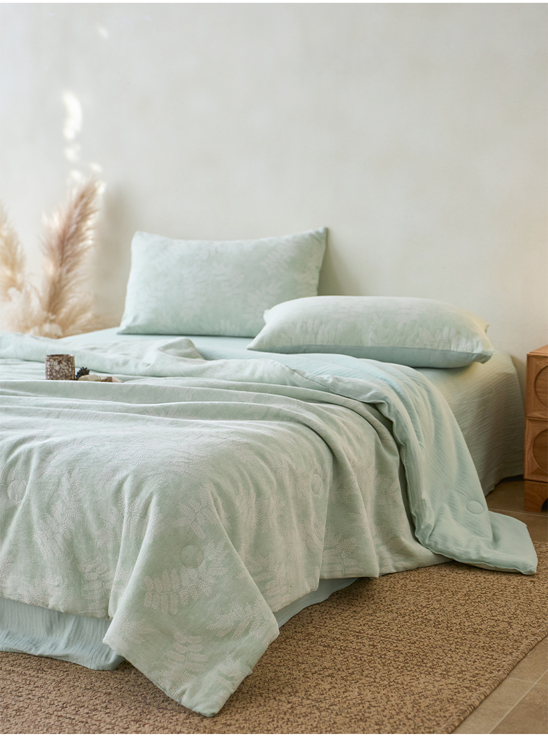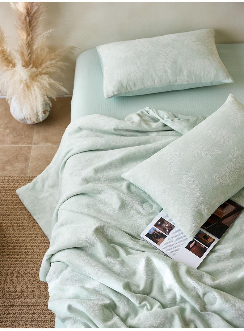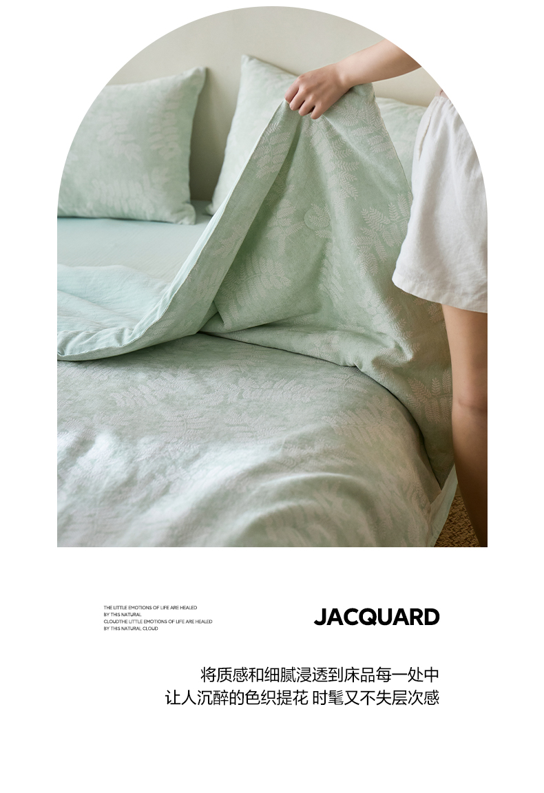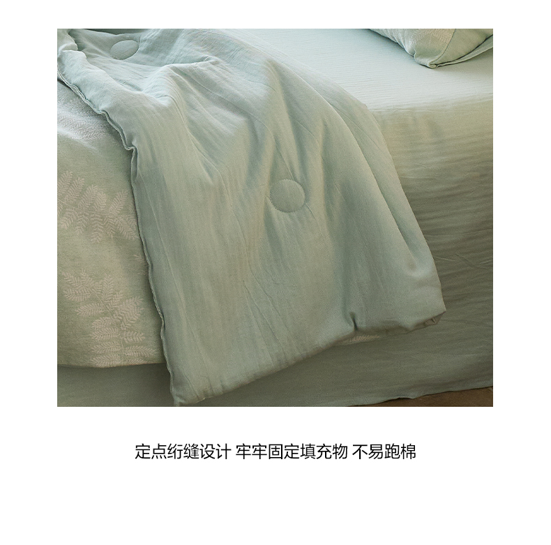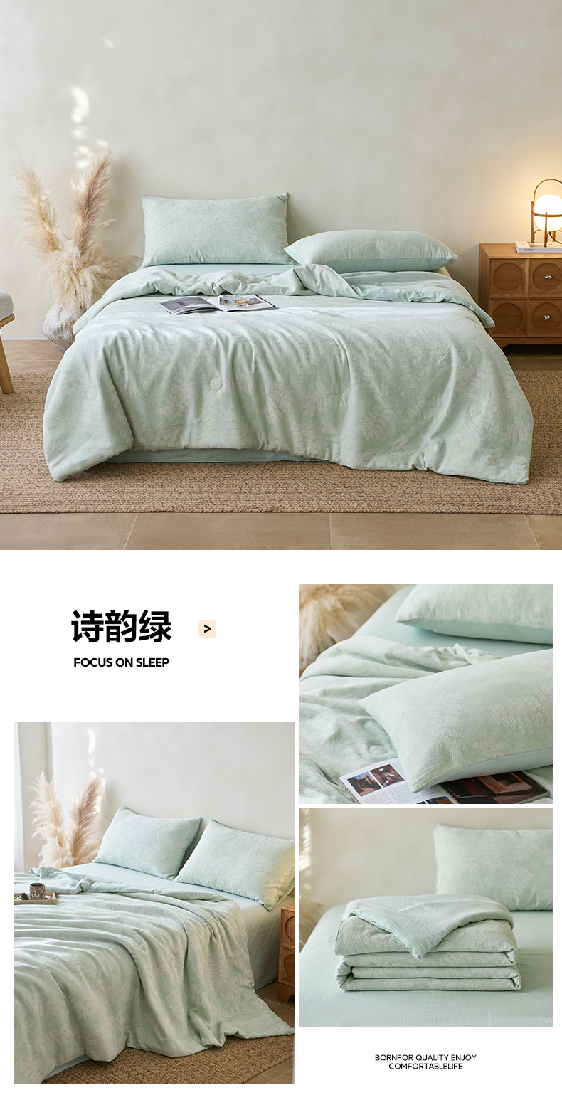 当前位置: 91家纺网 > 商品网购 > 被子 > 夏被 > 如一 2026新款60S全棉色织提花三层纱夏被四件套-诗韵系列 诗韵绿
