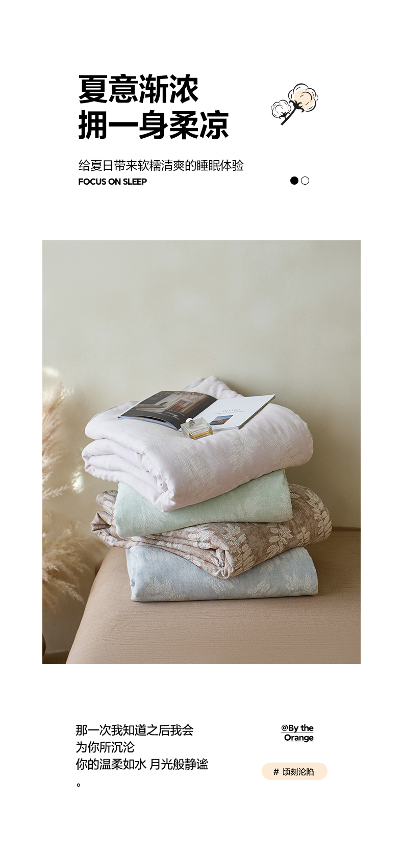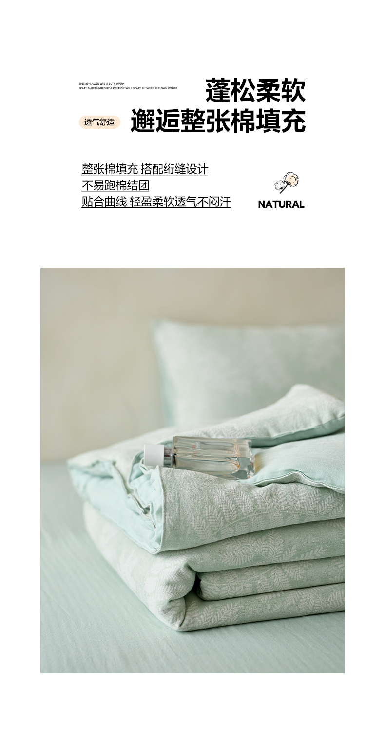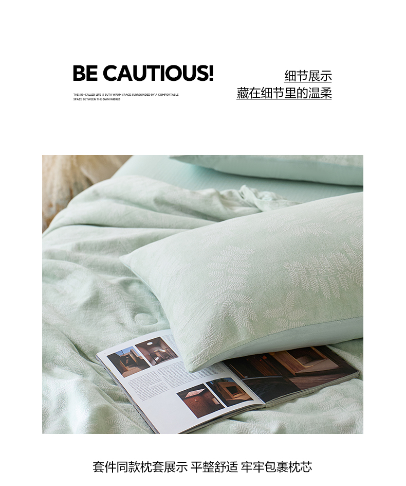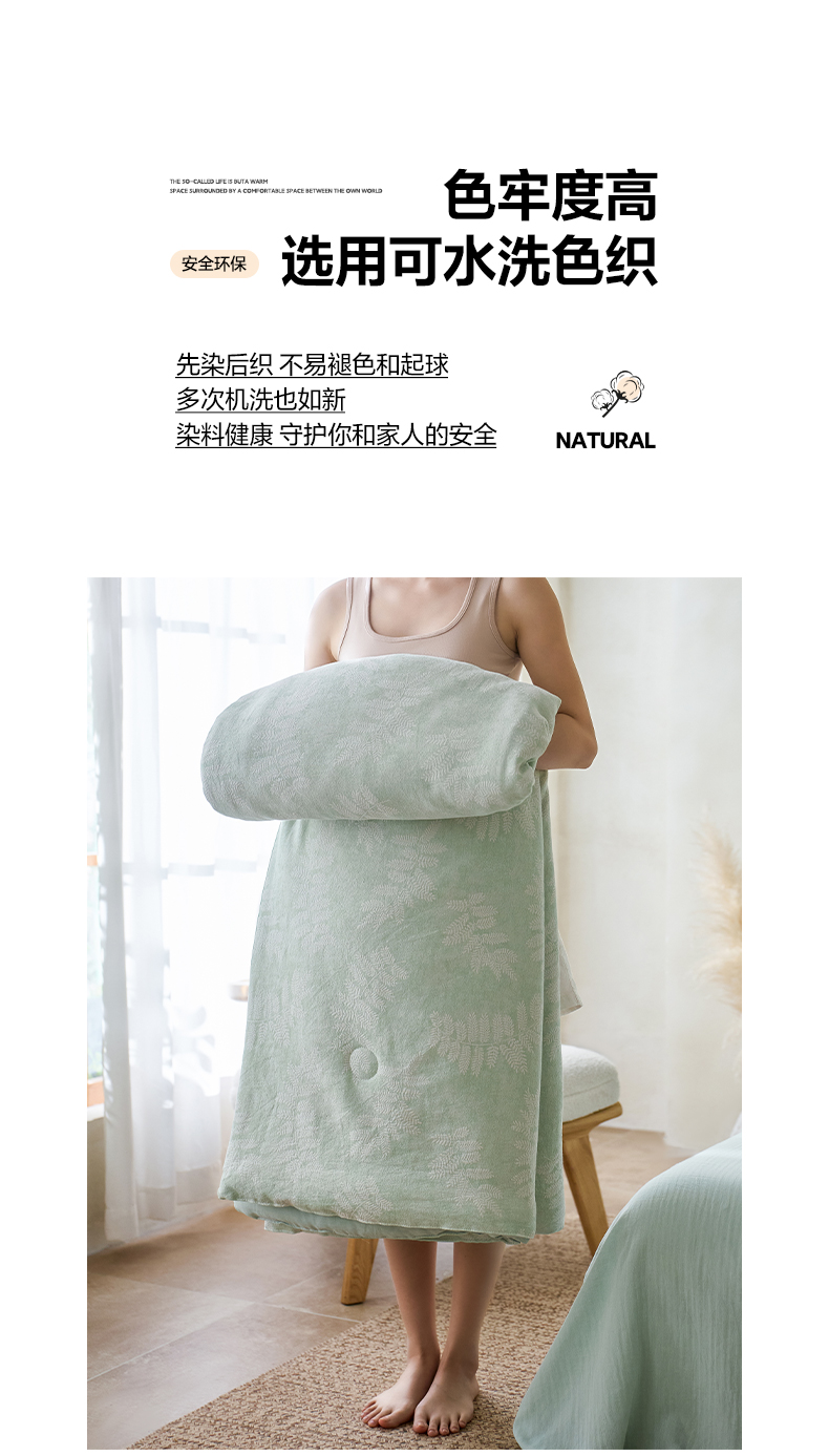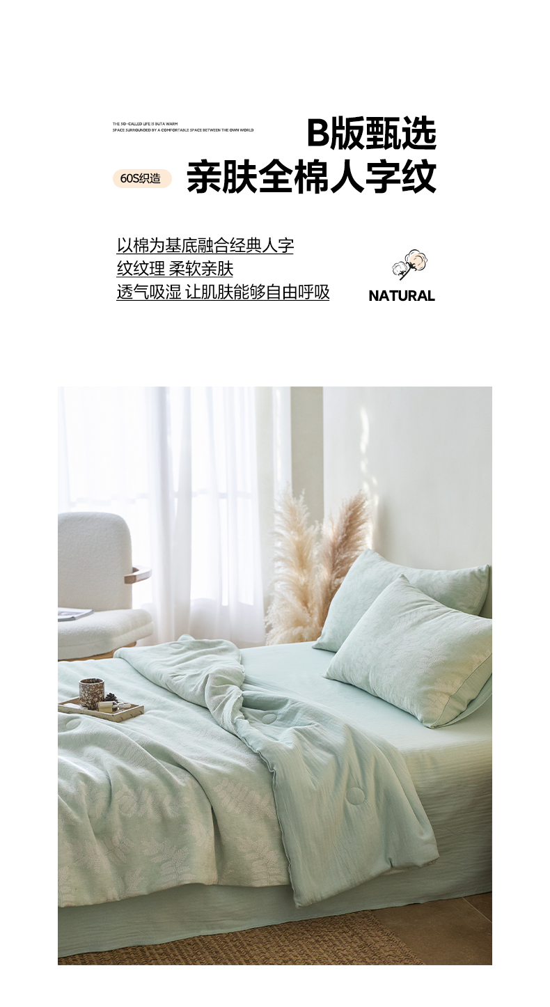 当前位置: 91家纺网 > 商品网购 > 被子 > 夏被 > 如一 2026新款60S全棉色织提花三层纱夏被四件套-诗韵系列 诗韵绿