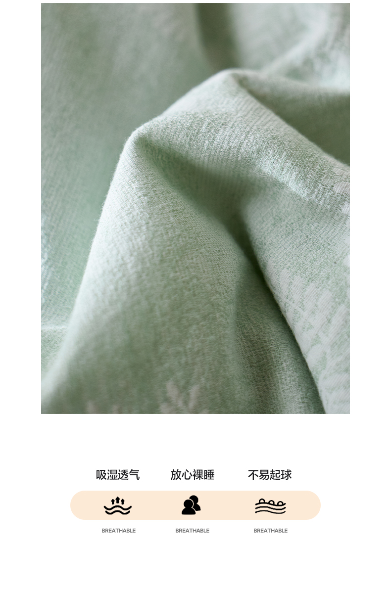如一 2026新款60S全棉色织提花三层纱夏被四件套-诗韵系列 诗韵绿