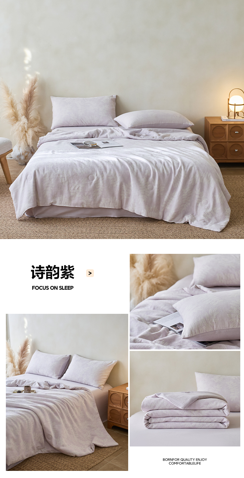 • 91家纺网 家纺一手货源 找家纺 (总)如一 2026新款60S全棉色织提花三层纱夏被四件套-诗韵系列,诗韵咖,诗韵蓝,诗韵绿,诗韵紫,组合