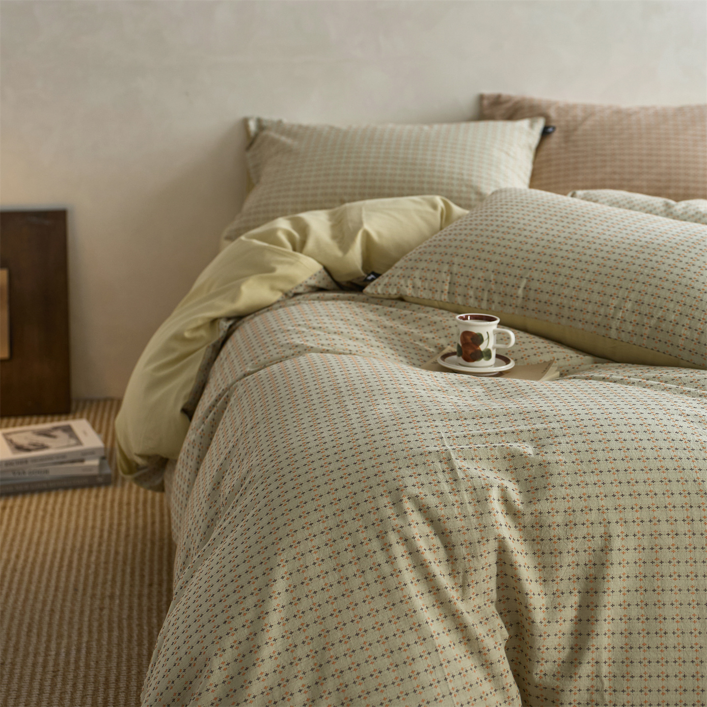 当前位置: 91家纺网 > 商品网购 > 床品套件 > 四件套 > 全棉普通四件套 > (总) 安莱生活 2026年新款水洗棉提花松栗小禾四件套