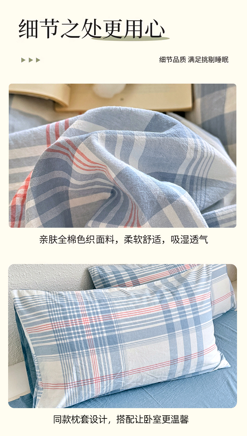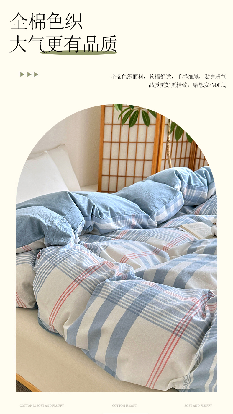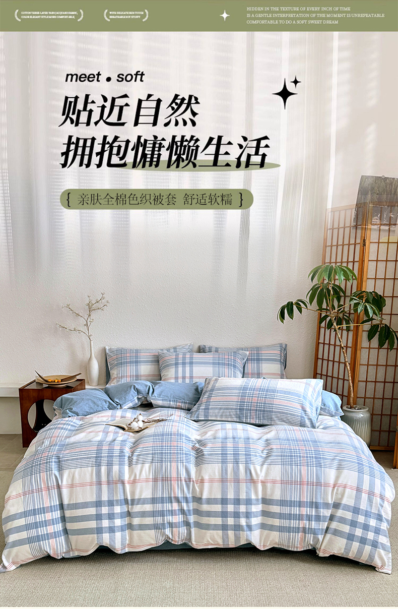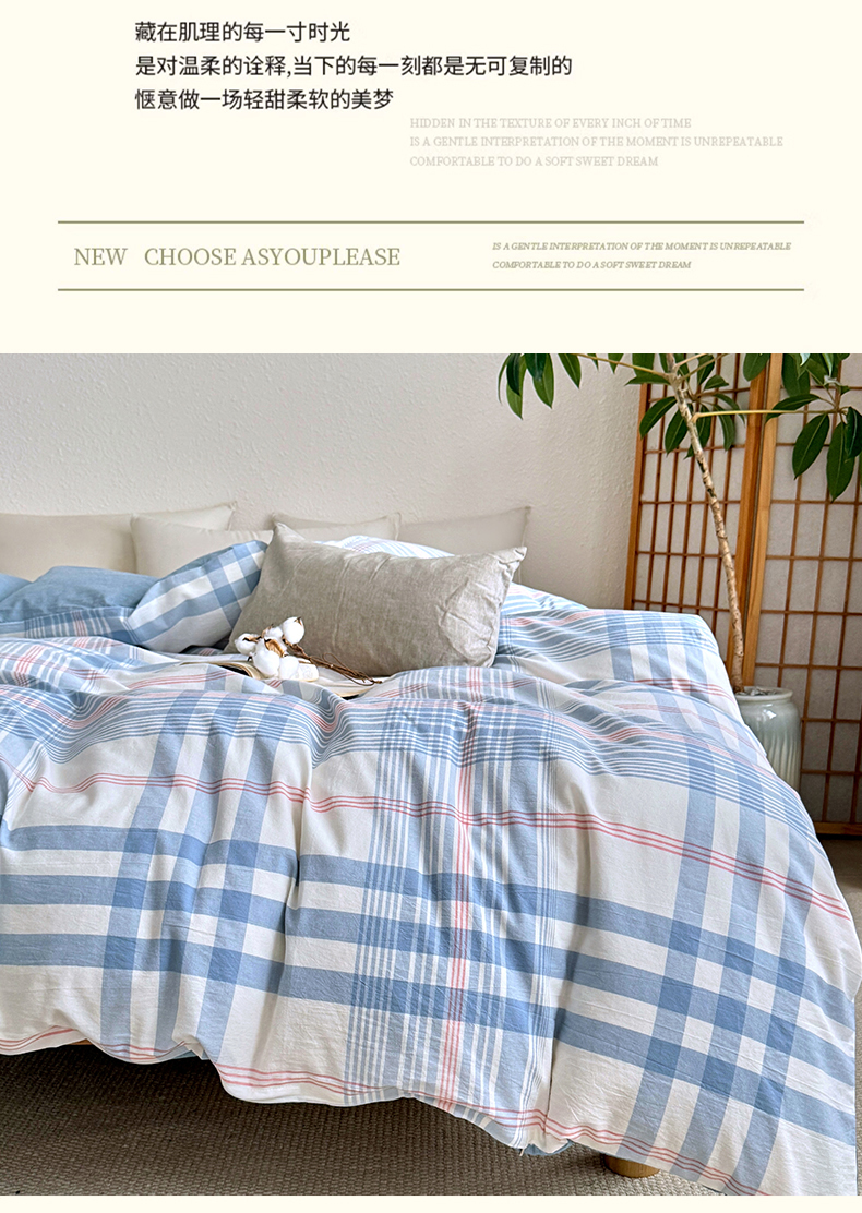 (总)家贝爱 2026新款全棉纯棉水洗色织被套单件被套单品单被套,大蓝格,粉韵格,海蓝格,简夕格,简易蓝,蓝橙格,蓝黄格,马卡绿格,时尚桔,雾莲格,小咖格,小蓝格,雅尚蓝,中灰格