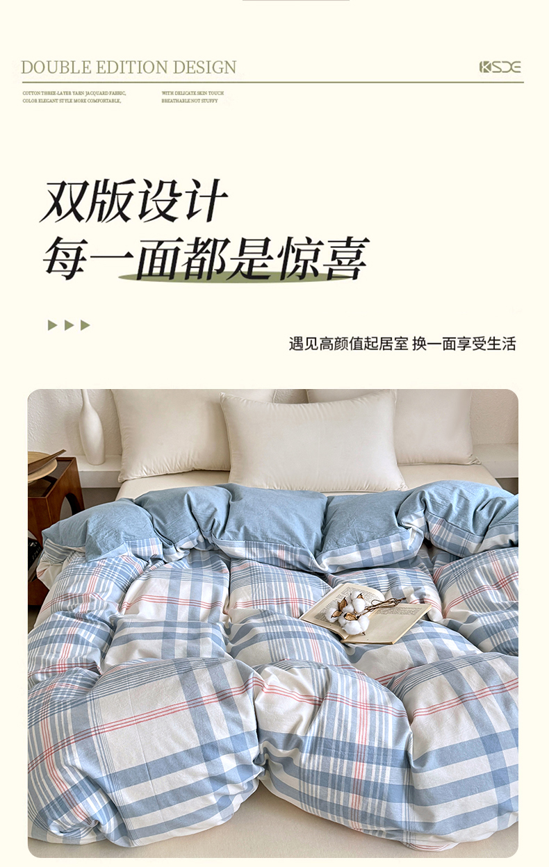 • 91家纺网 家纺一手货源 找家纺 家贝爱 2026新款全棉纯棉水洗色织被套单件被套单品单被套 雅尚蓝