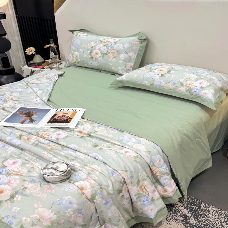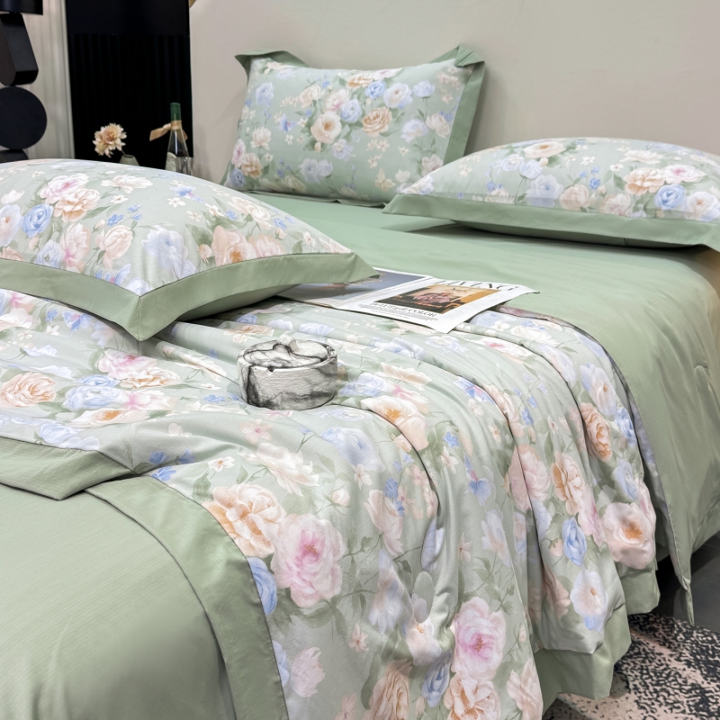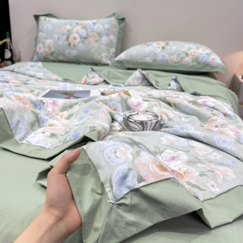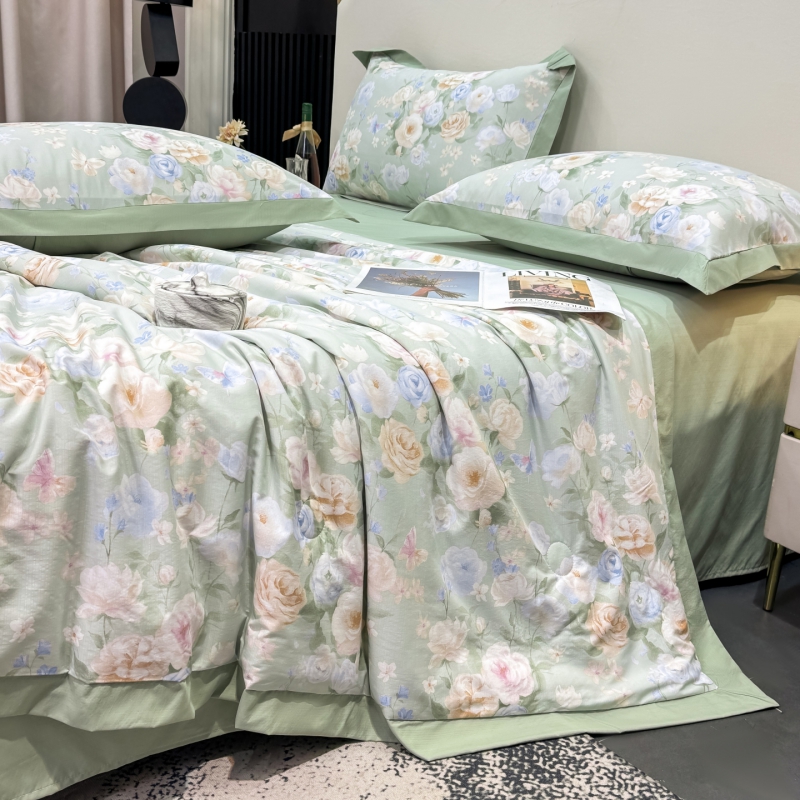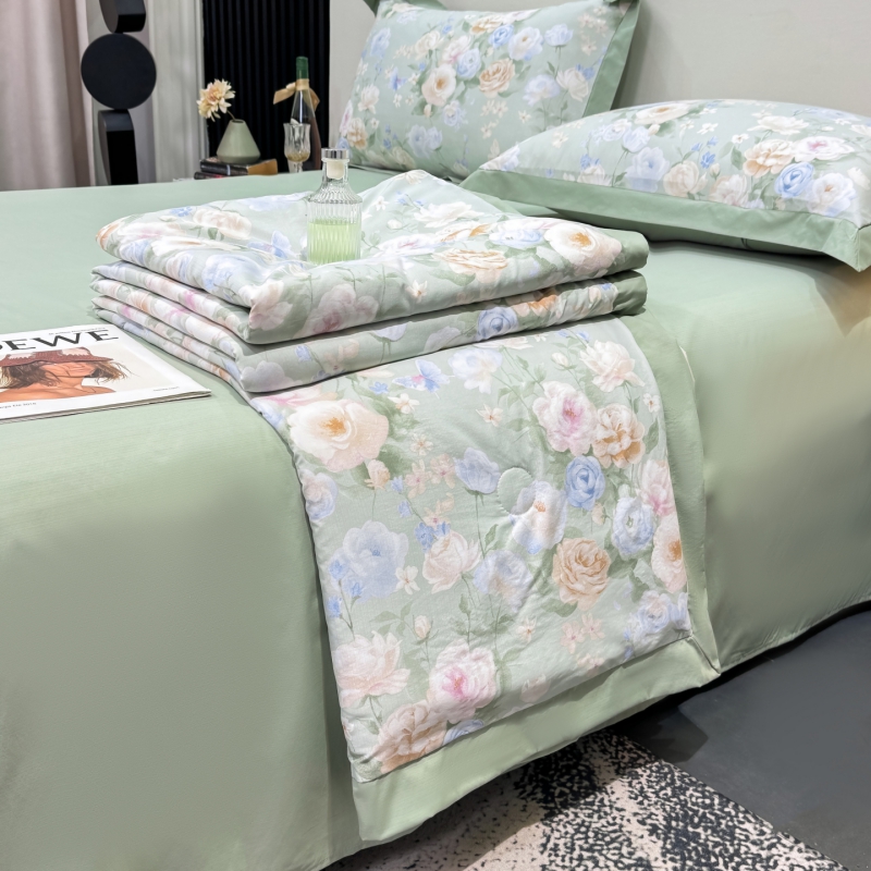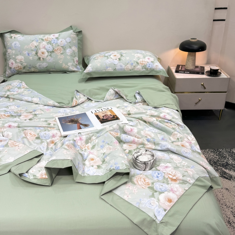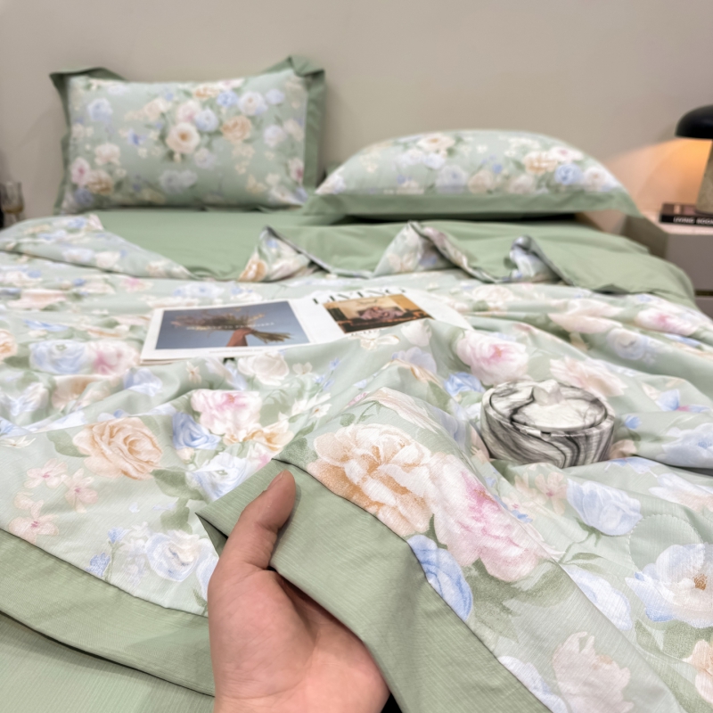 新款凉感天丝棉夏被夏凉被空调被夏被四件套系列 莫奈花(绿)