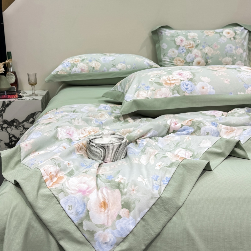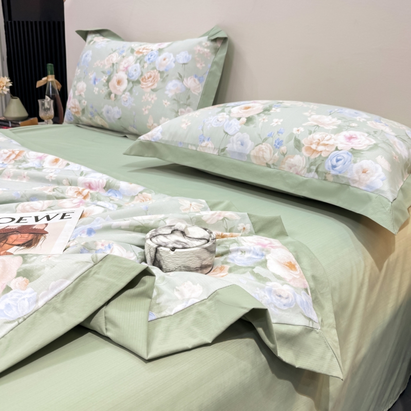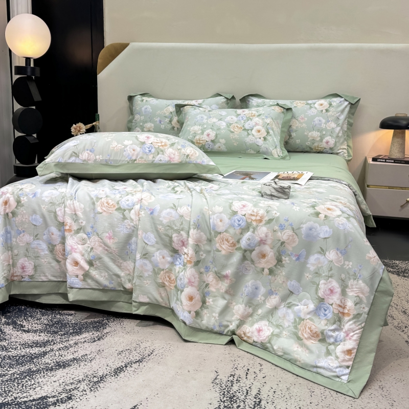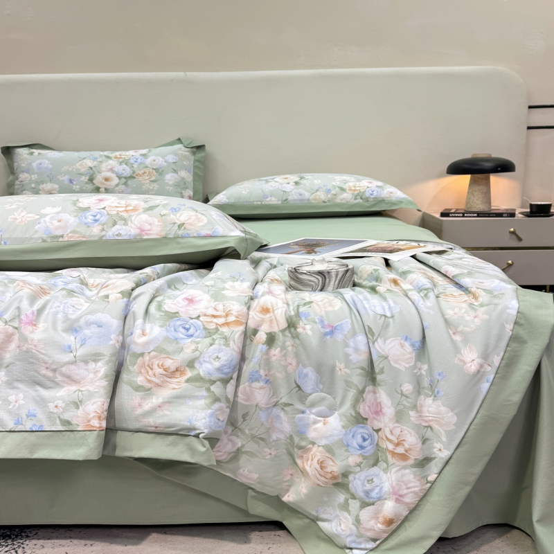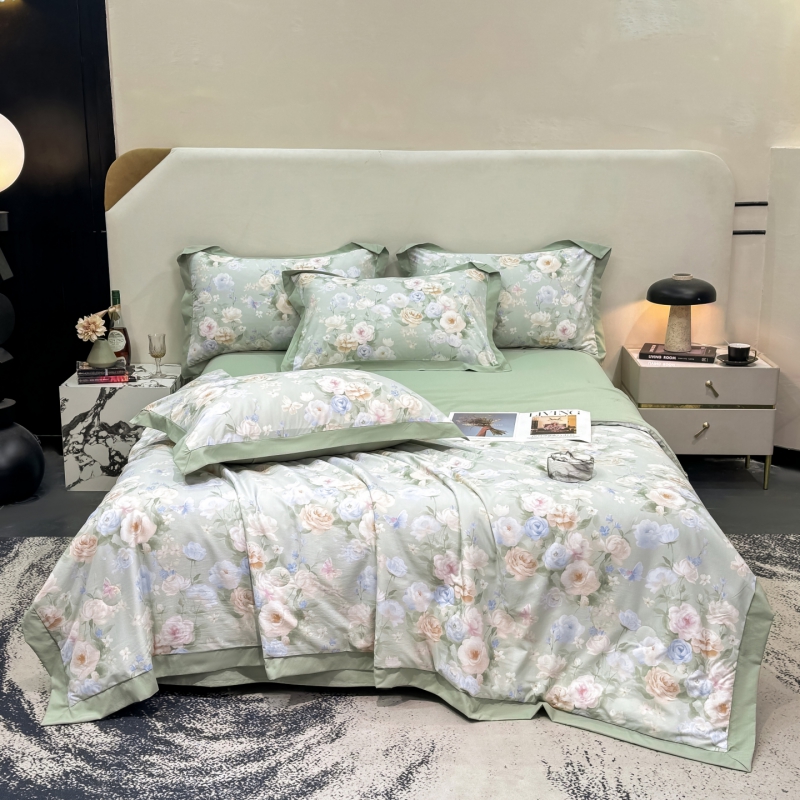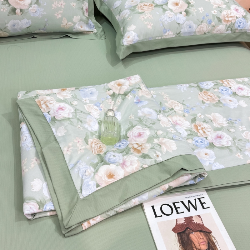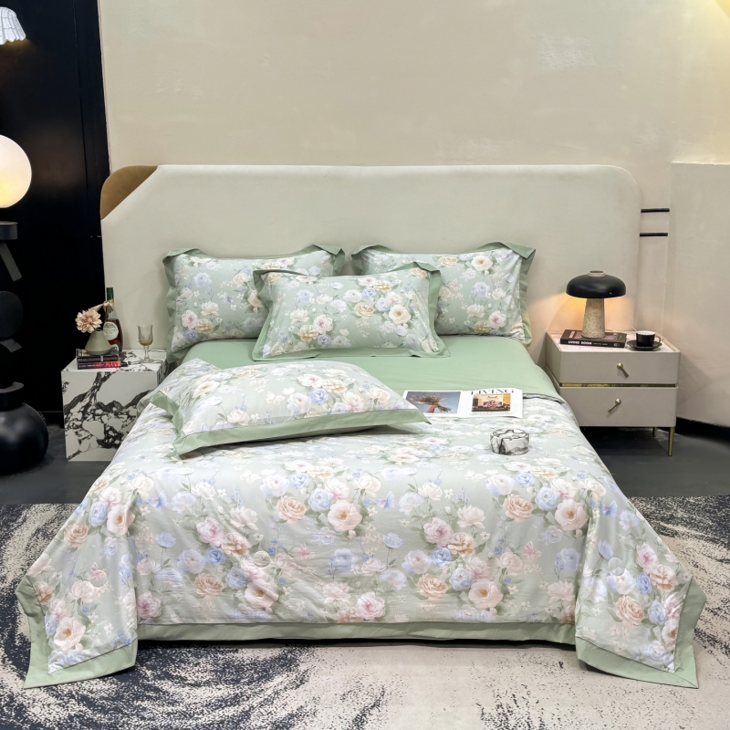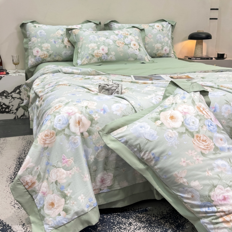 新款凉感天丝棉夏被夏凉被空调被夏被四件套系列 莫奈花(绿)
