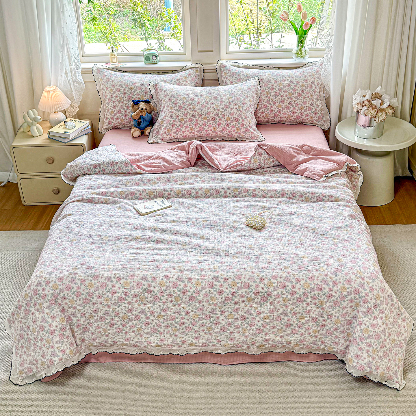 (总)梦纤绒 2026新款云感皱皱纱花边款夏被夏凉被空调被四件套,百福兰,春晓,可颂,太妃糖,小黑兔,春不晚,春日小熊,陌上花开,莫奈,若欢-绿,若欢紫色,舒芙蕾,田园拾趣-黄,兔小姐,郁金香小兔,波点小兔粉,波点小兔兰,情人节,十里桃花粉,十里桃花紫,夏天,运动健将熊,白茶-绿,桃花诺,白月光,缤纷几何,格格西高地,海盐蓝小格,黎漫,木槿绿,奶油泡芙,欧若拉,桃夭,甜茶,小晴天,芋泥紫小格,紫色蝴蝶结,心意,心意紫,小美满,乖乖象,一束温柔,半夏,春风里,豆蔻,蝴蝶梦,兰黛,山野栀子,素颜,微凉薄荷,心动,遇见,芝士奶酪,紫爱心,紫苏,花园兔,蜡笔画,初恋,莱茵河畔